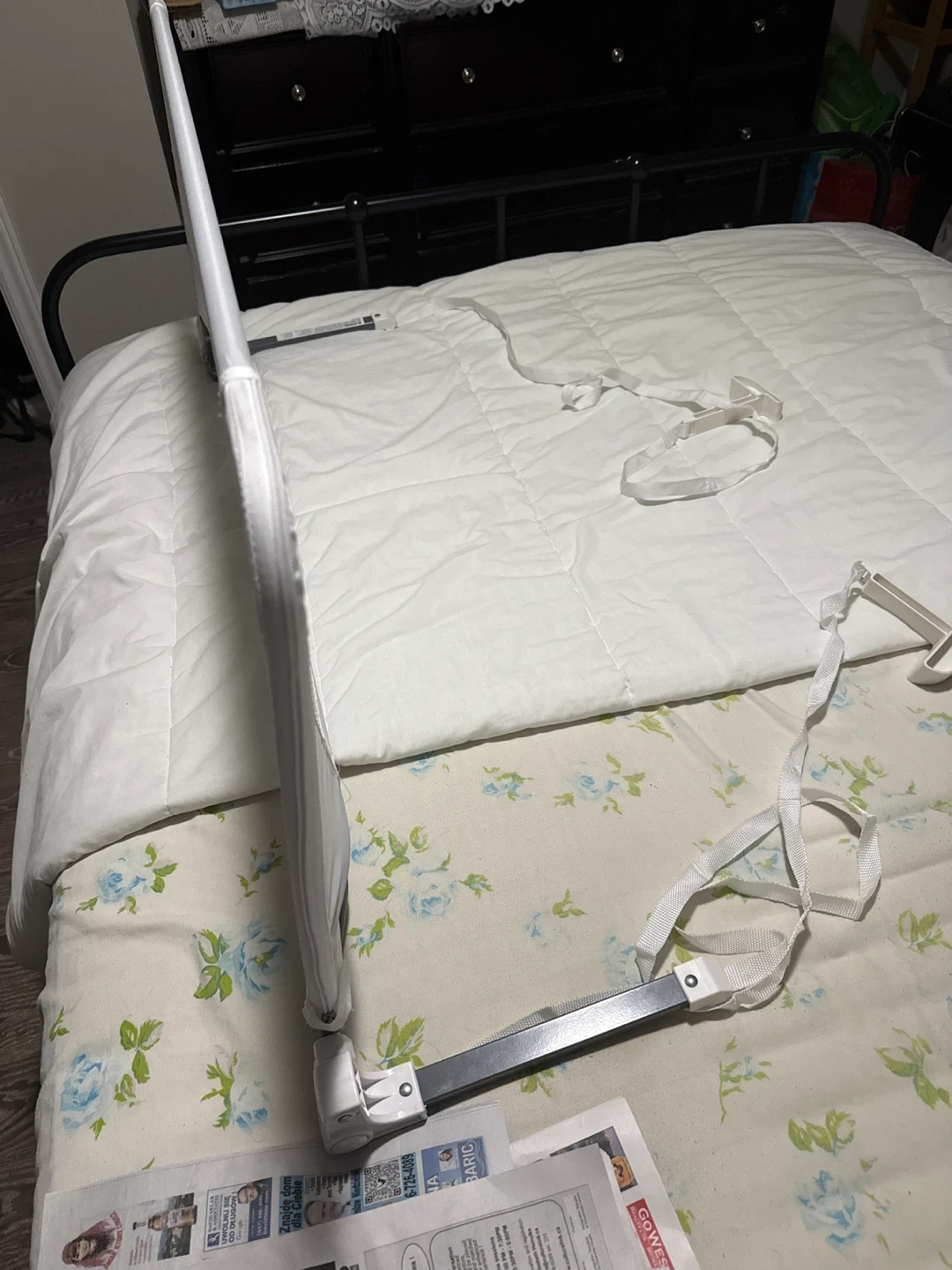 Selling a Regalo bed rail in great condition! It's white and easy to install, providing extra security for your little one during sleep. It comes with all the necessary straps for secure attachment to the bed frame. Perfect for transitioning your child to a bigger bed!