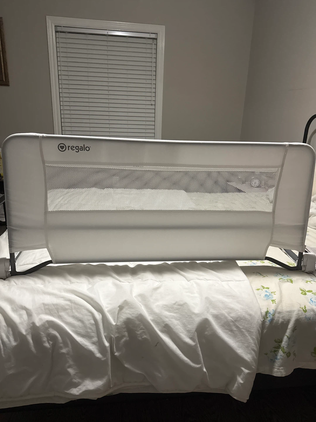Selling a Regalo bed rail in great condition! It's white and easy to install, providing extra security for your little one during sleep. It comes with all the necessary straps for secure attachment to the bed frame. Perfect for transitioning your child to a bigger bed!