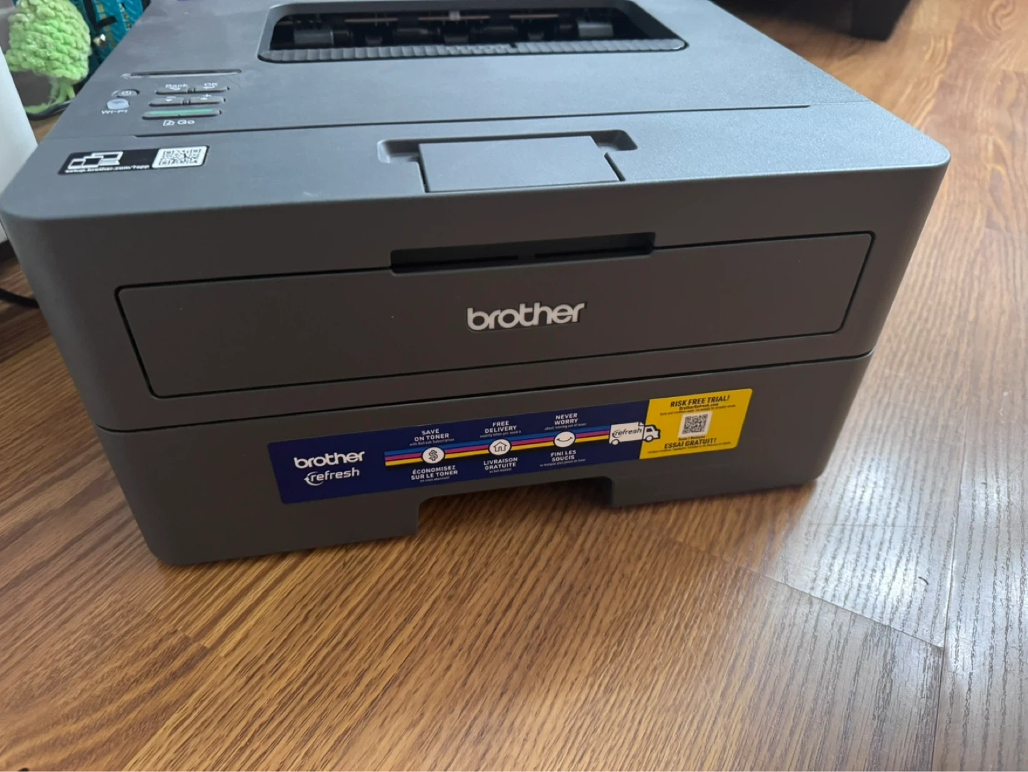 This is a Brother HL-L2340DW monochrome laser printer. It's compact and offers wireless connectivity. Includes the original box. Great for printing documents at home or in a small office!