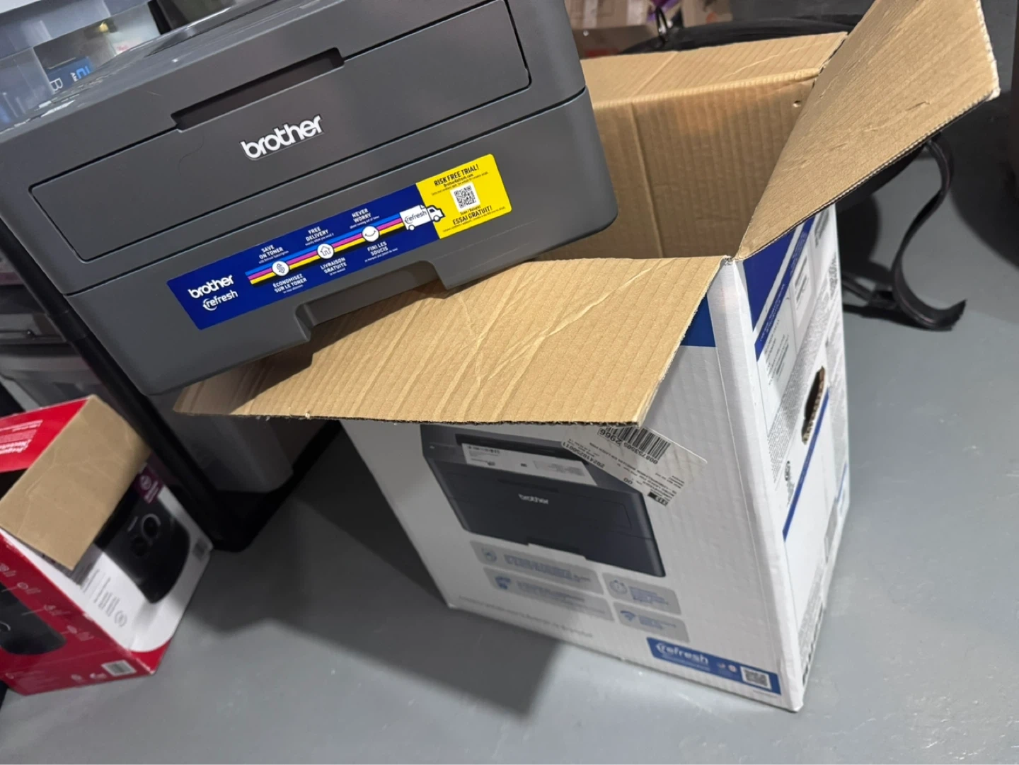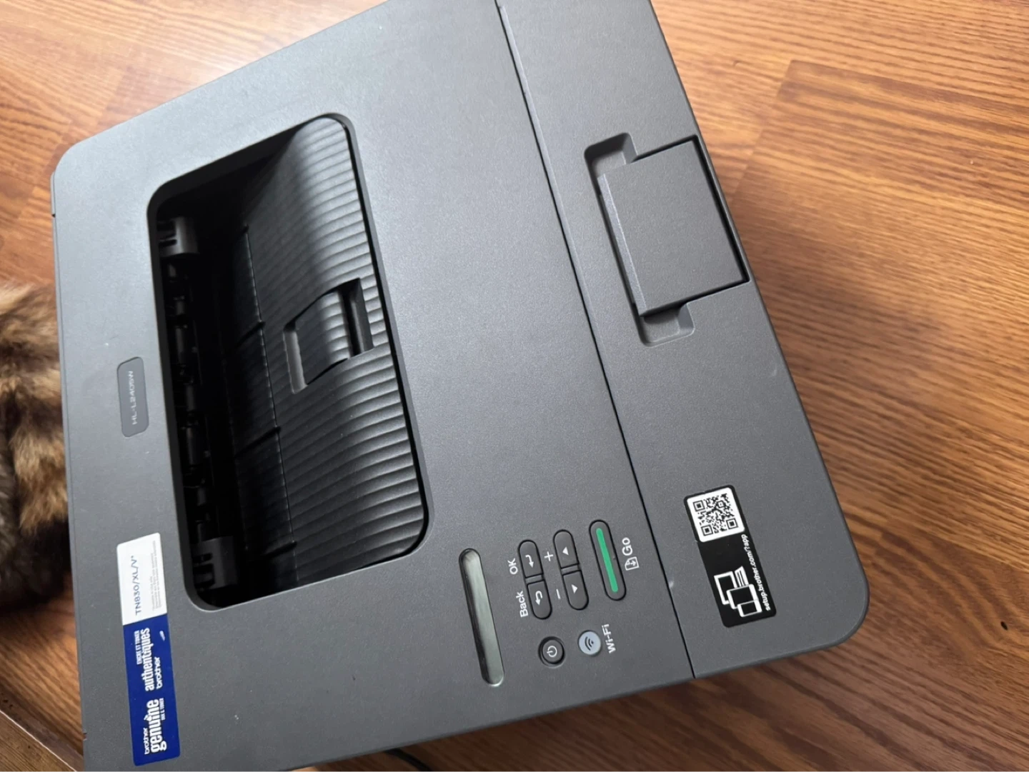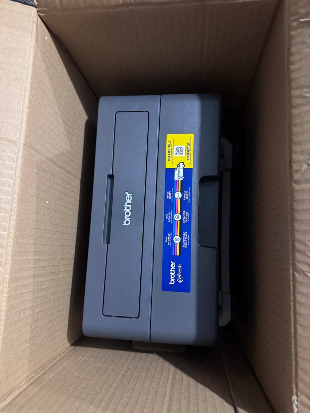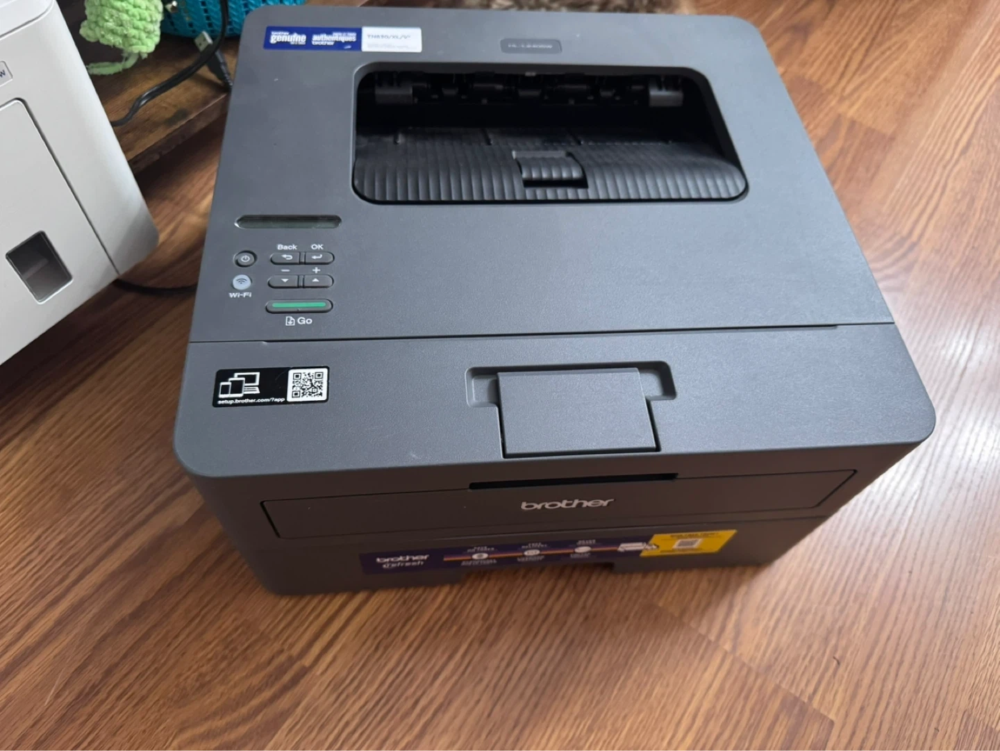 This is a Brother HL-L2340DW monochrome laser printer. It's compact and offers wireless connectivity. Includes the original box. Great for printing documents at home or in a small office!