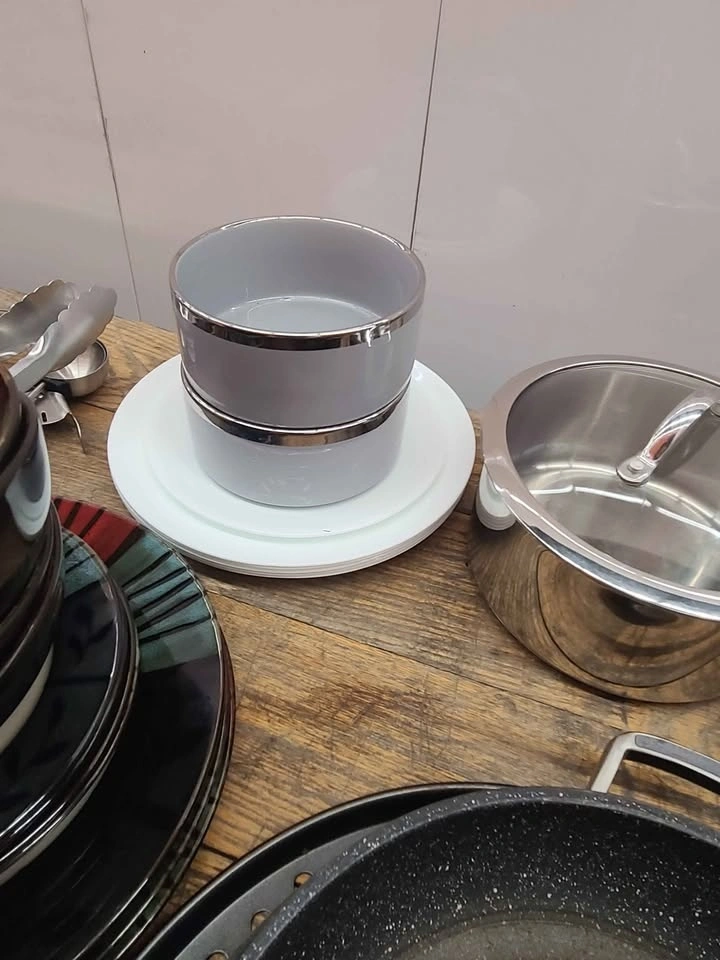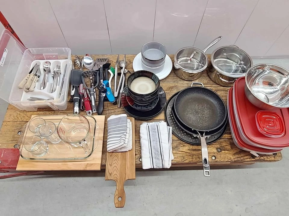 Good condition kitchenware, dinnerware, cutlery, pots and more.