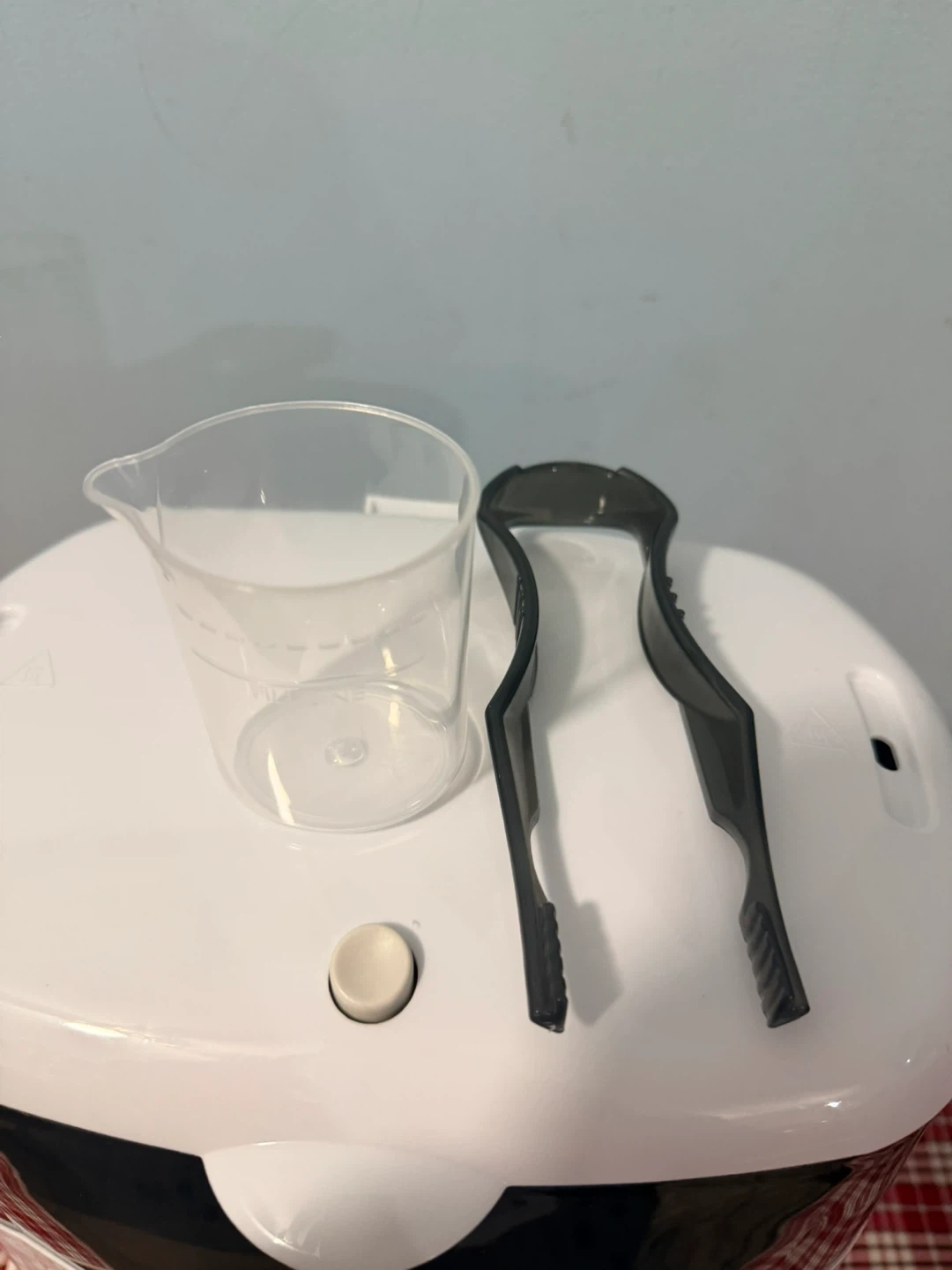 Dr. Brown's Deluxe Bottle Sterilizer, model AC045. It's a bottle sterilizer for baby bottles. Includes a measuring cup and tongs and its original box.
