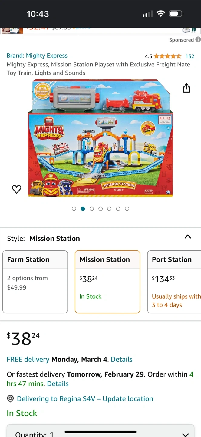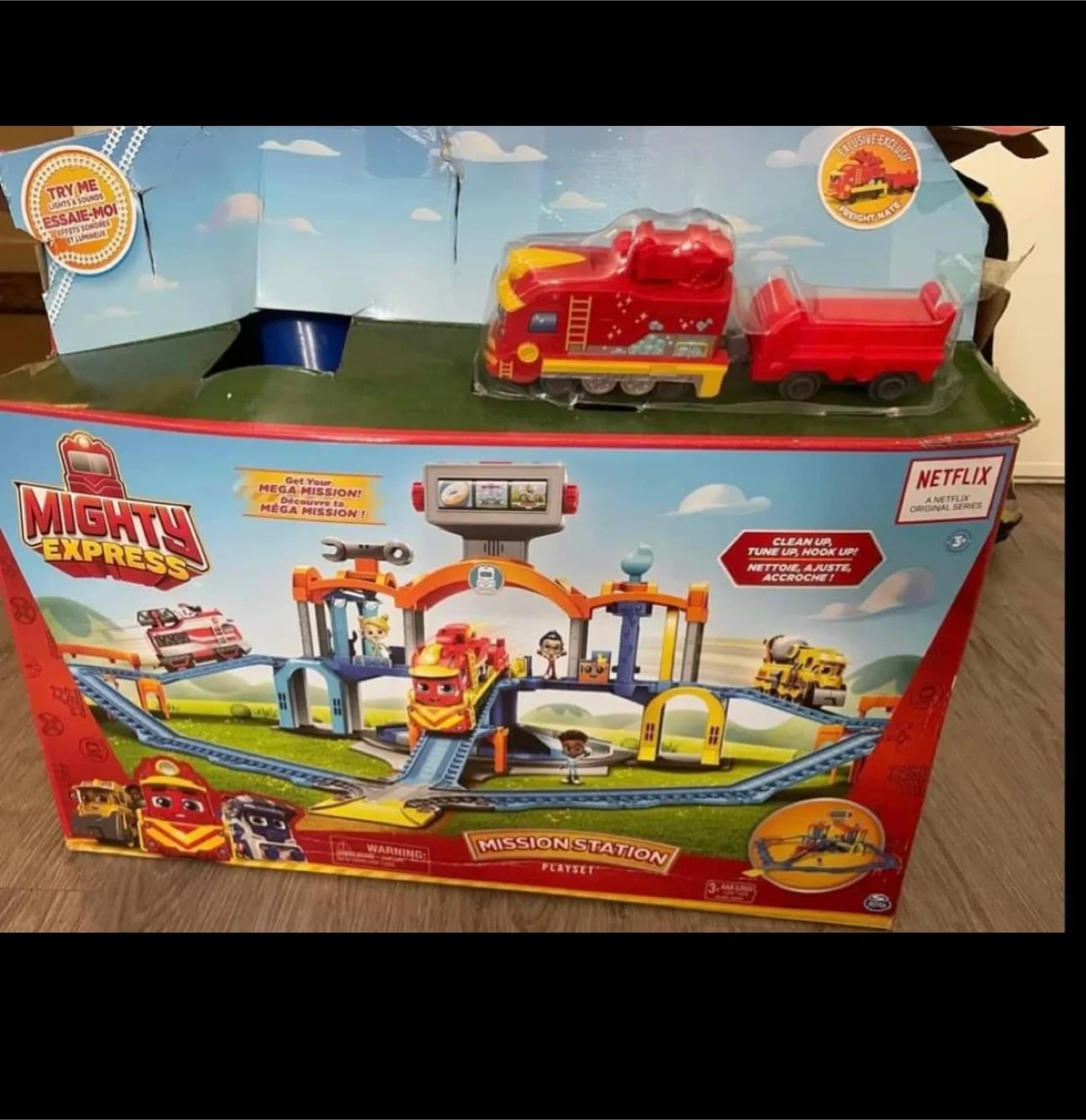 This Mighty Express Mission Station playset includes the Mission Station and an exclusive Freight Nate toy train. It features lights and sounds for interactive play. The set is recommended for ages 3 and up.