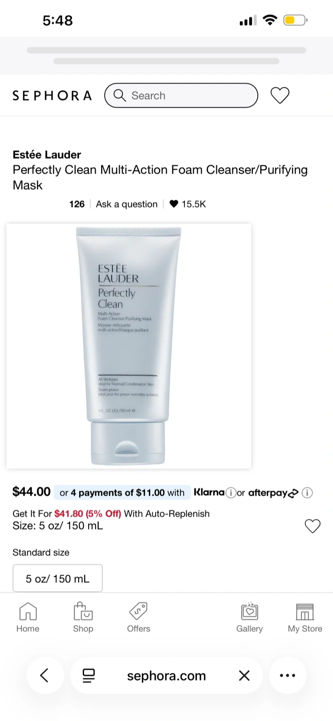 Estée Lauder Perfectly Clean Multi-Action Foam Cleanser/Purifying Mask. It's 5 fl. oz./150ml. Ideal for normal/combination skin.