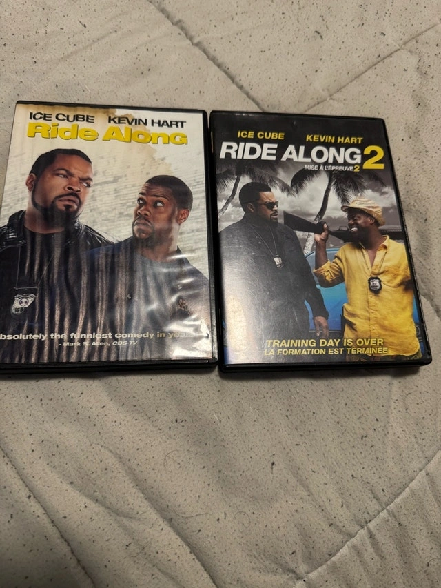 For sale are the used DVDs Ride Along and Ride Along 2, starring Ice Cube and Kevin Hart. These DVDs are in good condition. DVD Details: * Ride Along * Ride Along 2. Similar DVDs tend to sell for about $5-$10 each. Since this is a double feature, I'm pricing it at the higher end. If you're seeing this ad, then yes, it's still available!