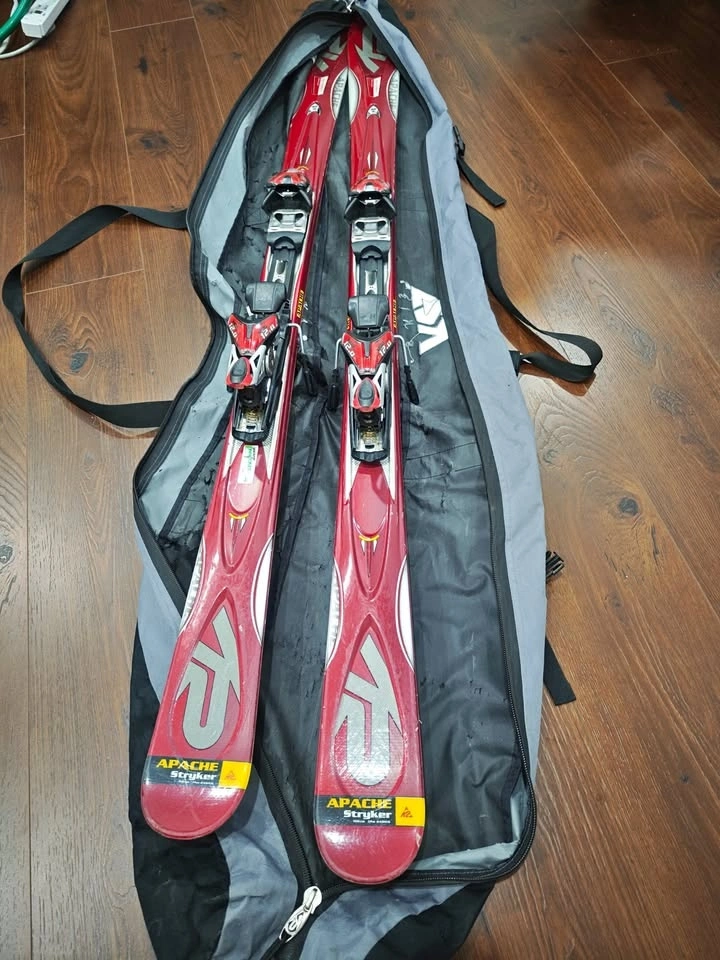 Apache Stryker skis, 170 cm length. Good condition, lightly used. Ideal for intermediate skiers. Includes bindings and ski bag. Feel free to message if you have any questions!