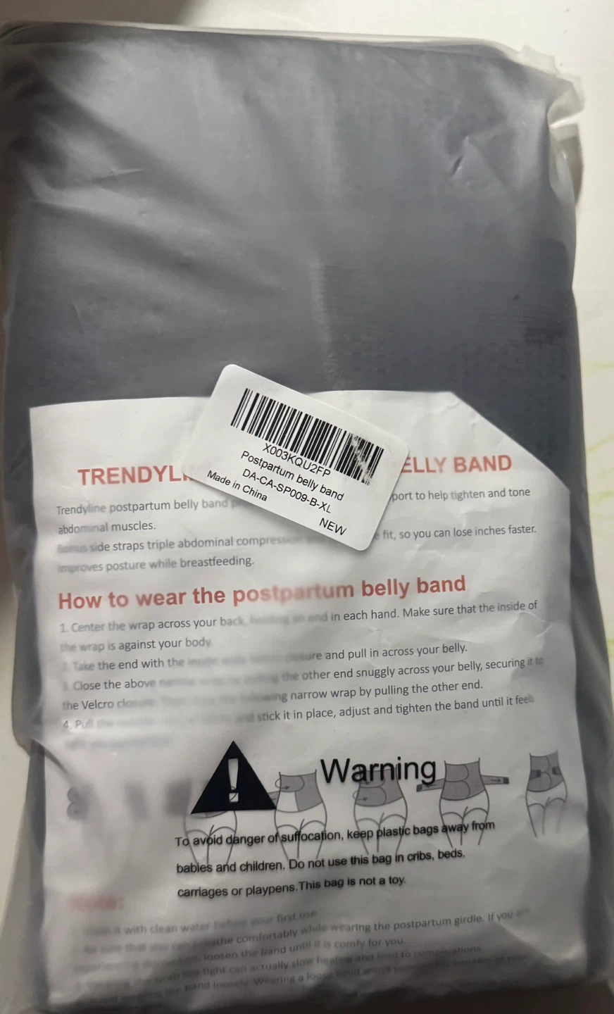 This Trendyline postpartum belly band helps tighten and tone abdominal muscles. It features side straps for triple abdominal compression and improves posture while breastfeeding. The XL size is made from a comfortable material.