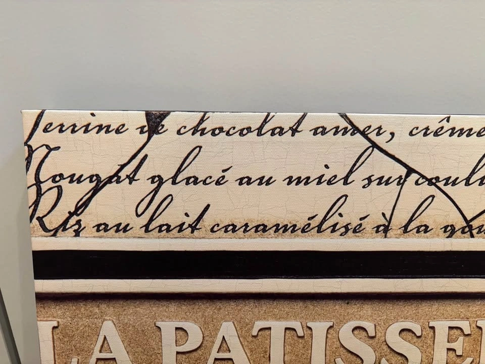 Buy & SellLa Patisserie Canvas ArtLa Patisserie Canvas Art$12La Patisserie canvas art with French script writing. 16" square. From a smoke and pet free home. Pick up in Keswick.WHERE TO MEETCheck LocationView MapSELLERKatKeswick100 reviews0 chats·0 favorites·0 viewsSEND CHAT TO SELLERHi Kat! I’m interested in your listing.Hi Kat! I’m interested in your listing.Get the Karrot app to chatSign In to chat