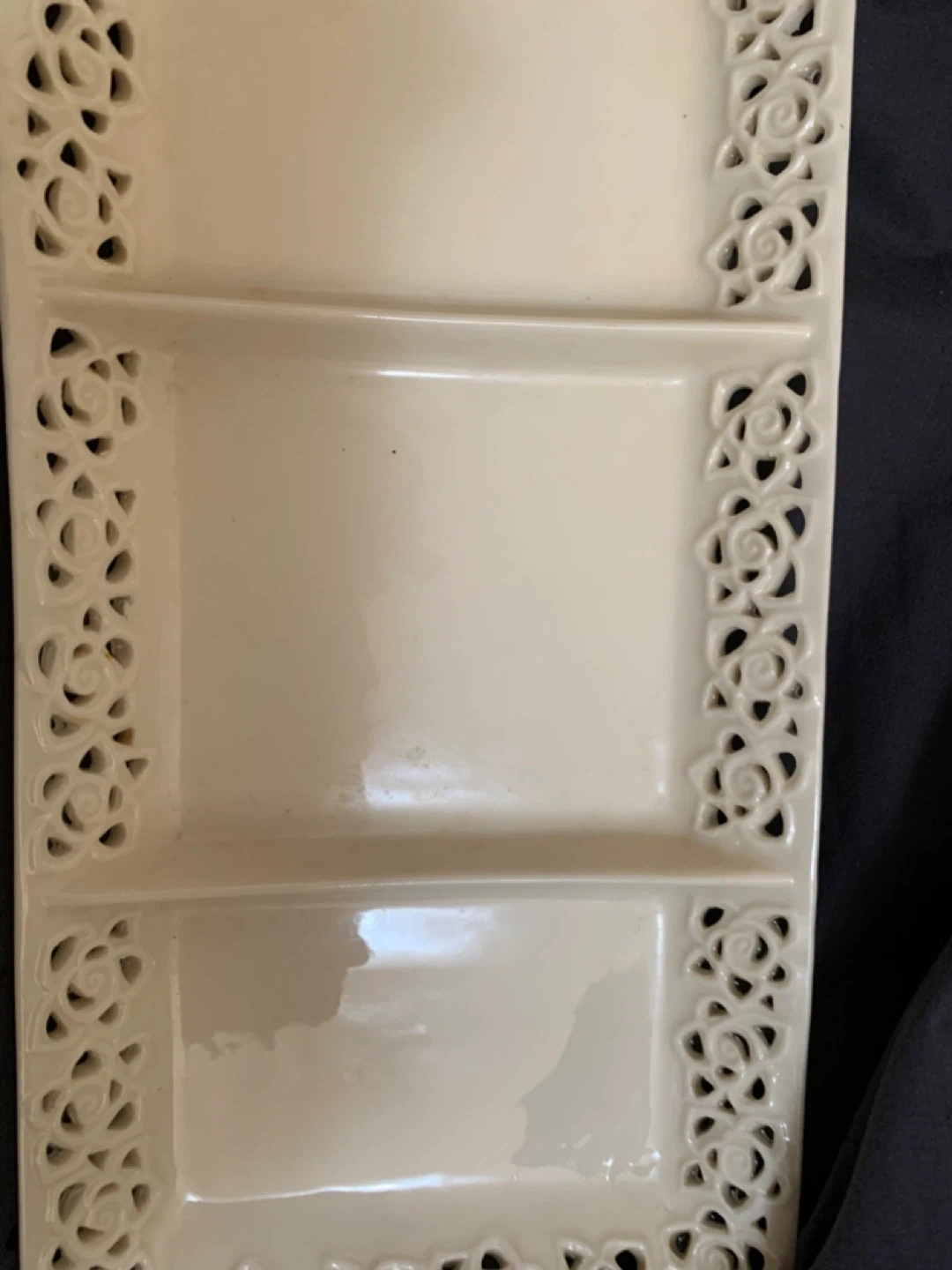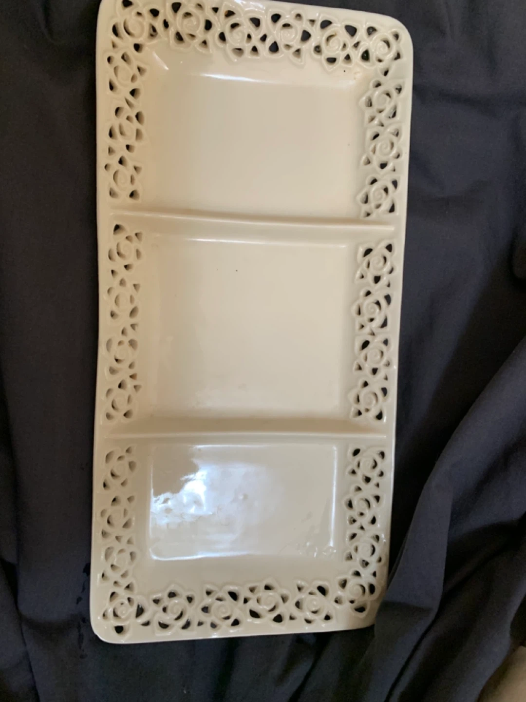 Selling a Godinger & Co. serving tray. It's perfect for serving appetizers or desserts at your next gathering! The tray features a beautiful floral design around the edges and has three sections.