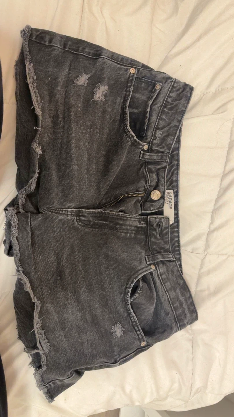 Garage Denim black jean shorts. Bought them back in 2024, they’re too big now tho. Worn 3 times back in 2024.