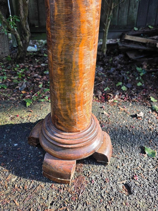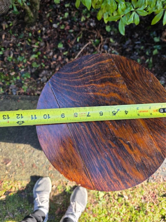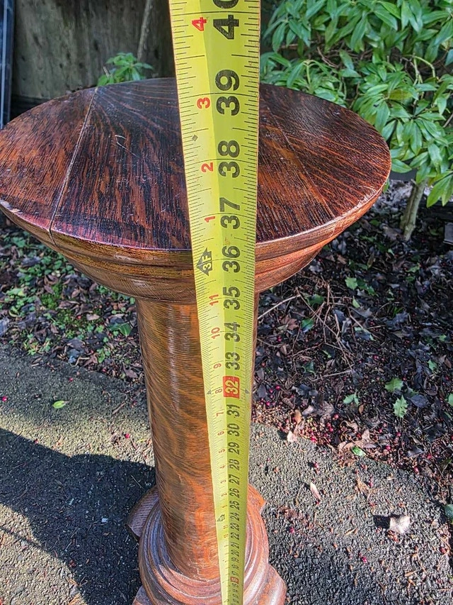 Add a touch of rustic charm to your garden or indoor space with this lovely wooden plant stand! This beautiful piece stands approximately 39 inches tall and features a sturdy 11-inch diameter top, perfect for showcasing your favourite potted plants or decorative items. This is a used item, but it’s in great shape. Here are the approximate measurements: Height: 36 inches, Top Diameter: 11 inches. If the ad is still up, the stand is still available!