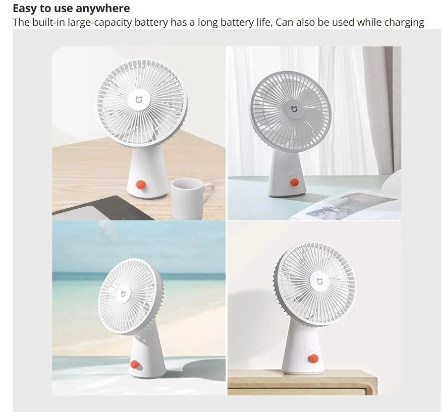 XIAOMI MIJIA Desktop Mobile Fan, Universal Type-C Charging Port, 18.5 - Hour Ultra - Long Battery Life