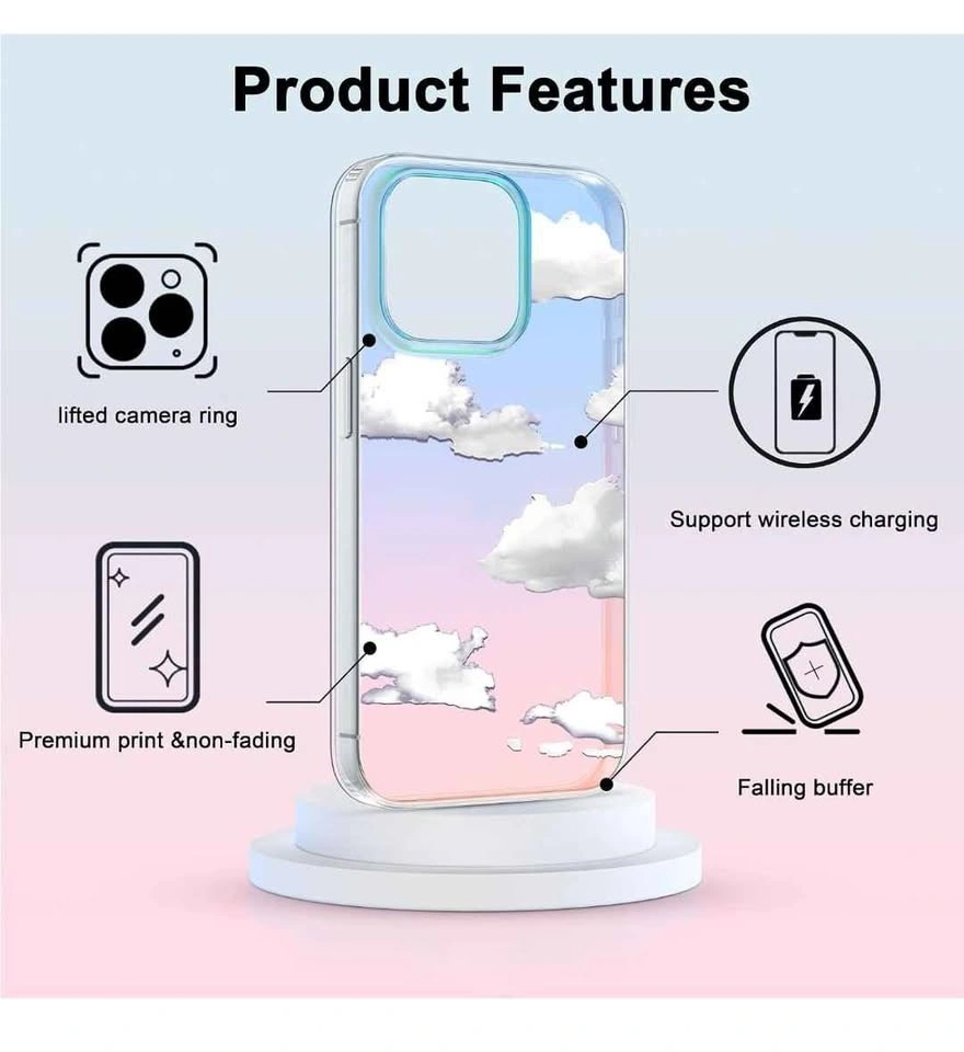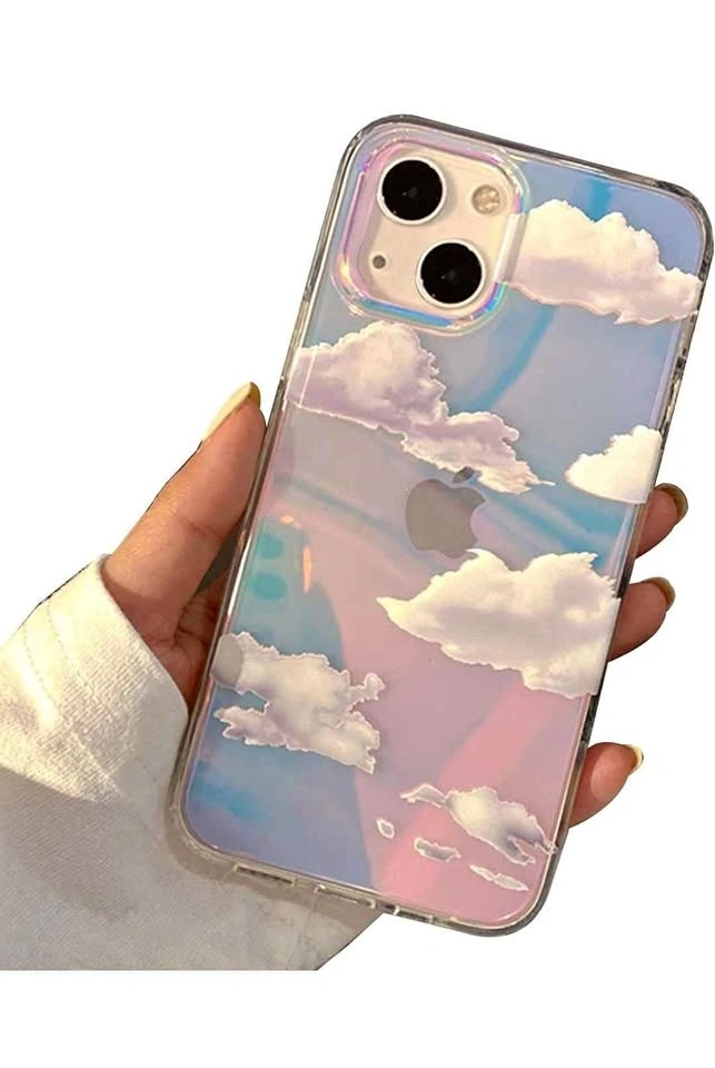 Compatible with iPhone 15 Pro (6.1 inch, 2023 Released). Durable slim cover with a white cloud aesthetic glitter design. Great for women and girls.