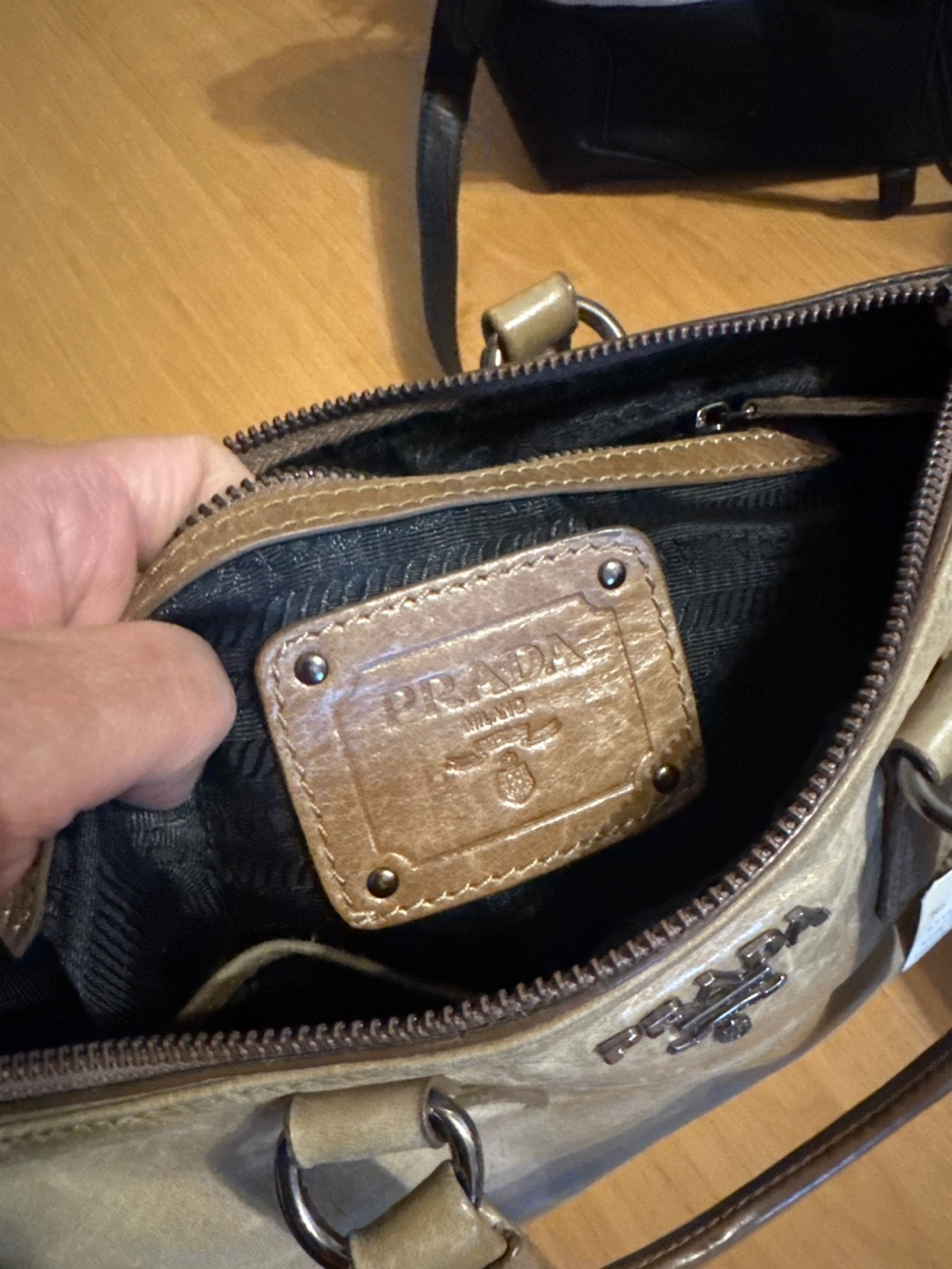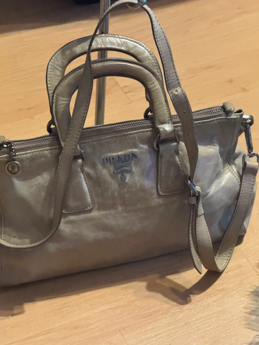Pre-owned Prada handbag. Light beige leather. Top handles and a shoulder strap. Zip closure. Interior pocket. Excellent condition.