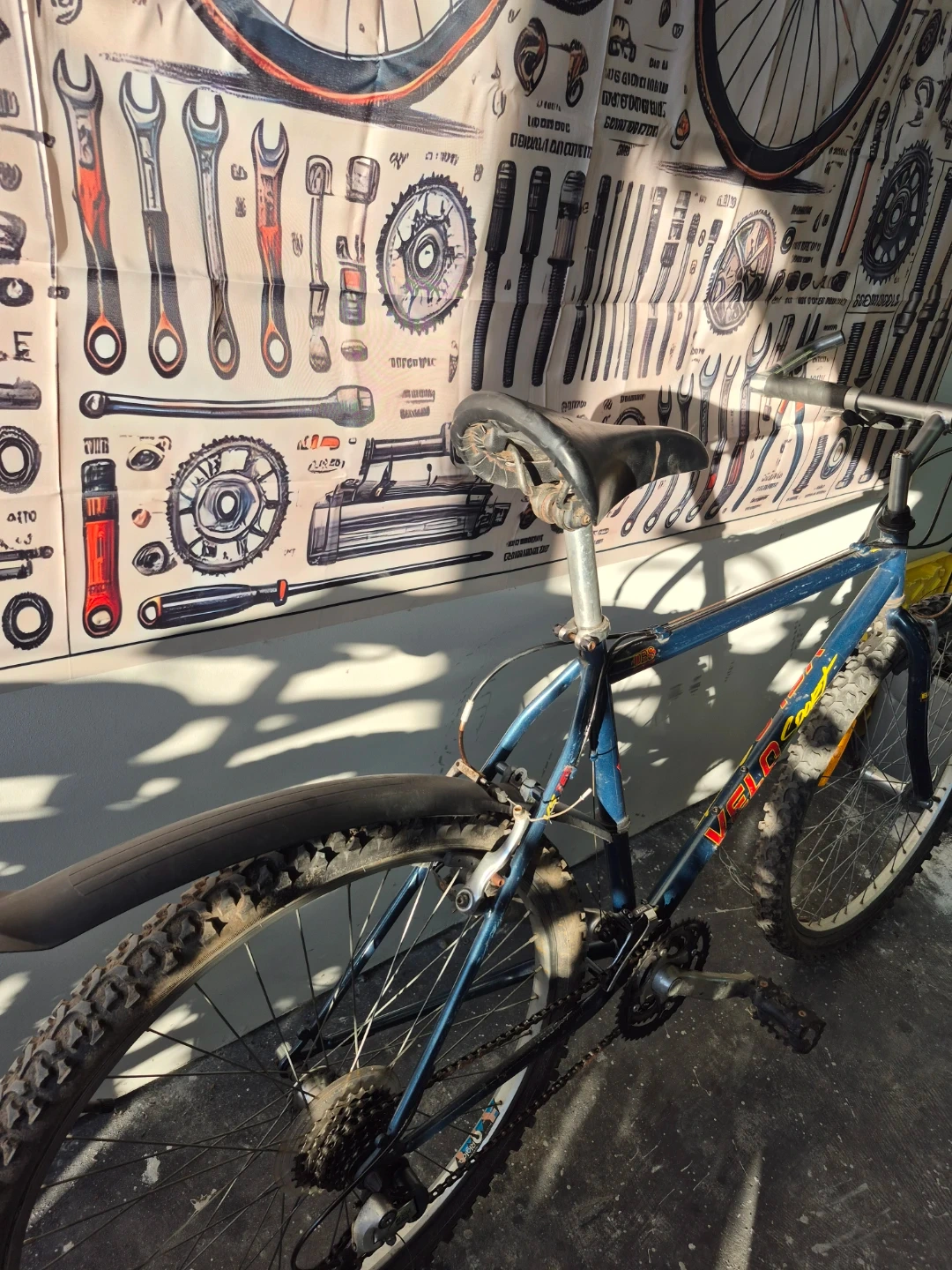 Selling a Velo Sport bicycle! It is blue and has some wear and tear on the tires. Perfect for getting around town or hitting some trails