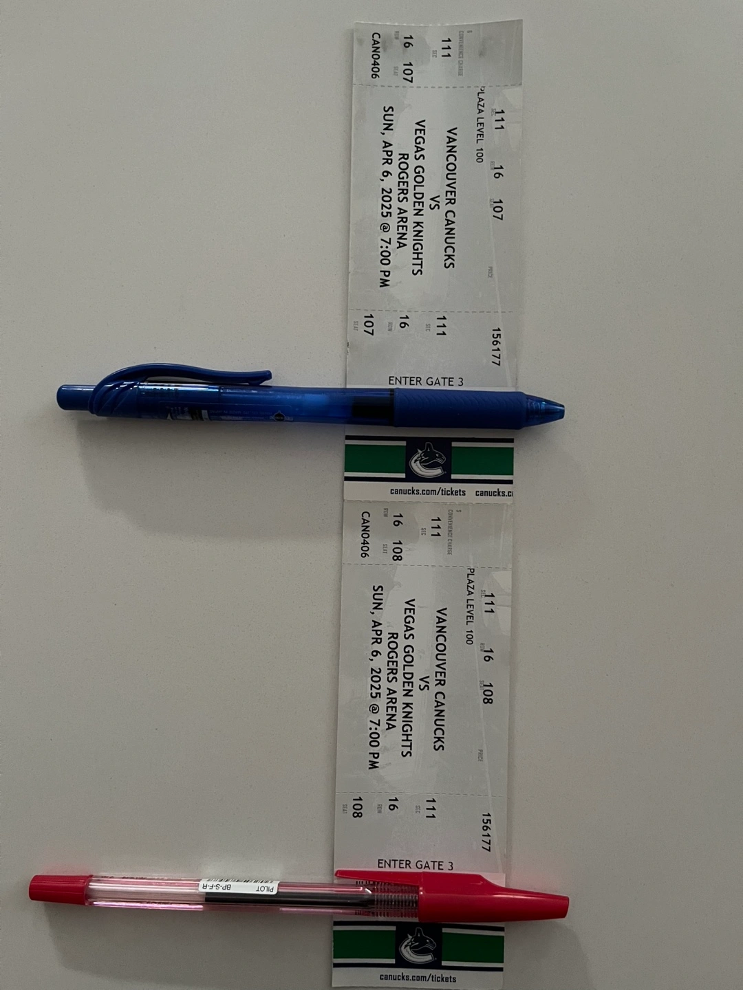 Pair of Vancouver Canucks tickets, lower bowl. Date is April 6th 2025.