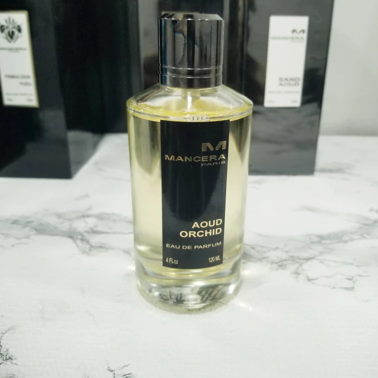 Selling a bottle of Mancera Aoud Orchid Eau de Parfum. The bottle contains 4.0 fl oz (120 mL) of fragrance. It's a natural spray.