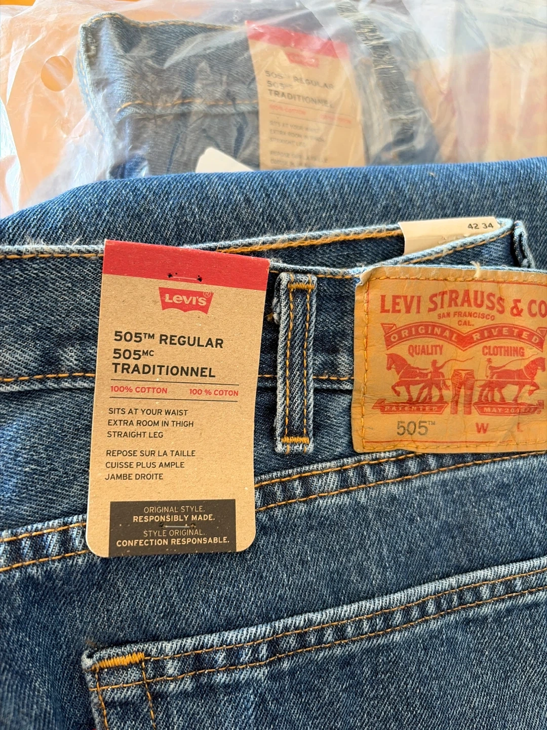 Buy & SellLevi's 505 Regular Fit Straight Leg JeansLevi's 505 Regular Fit Straight Leg Jeans$50Levi's 505 Regular Fit jeans in a straight leg style. They sit at your waist with extra room in the thigh. Made from 100% cotton. SIZE 42 x 34ConditionNewBrandLevi'sWHERE TO MEETCheck LocationView MapSELLERverifiedResellerApplewood26719 reviews0 chats·0 favorites·7 viewsSEND CHAT TO SELLERHi Reseller! I’m interested in your listing.Hi Reseller! I’m interested in your listing.Get the Karrot app to chatSign In to chat