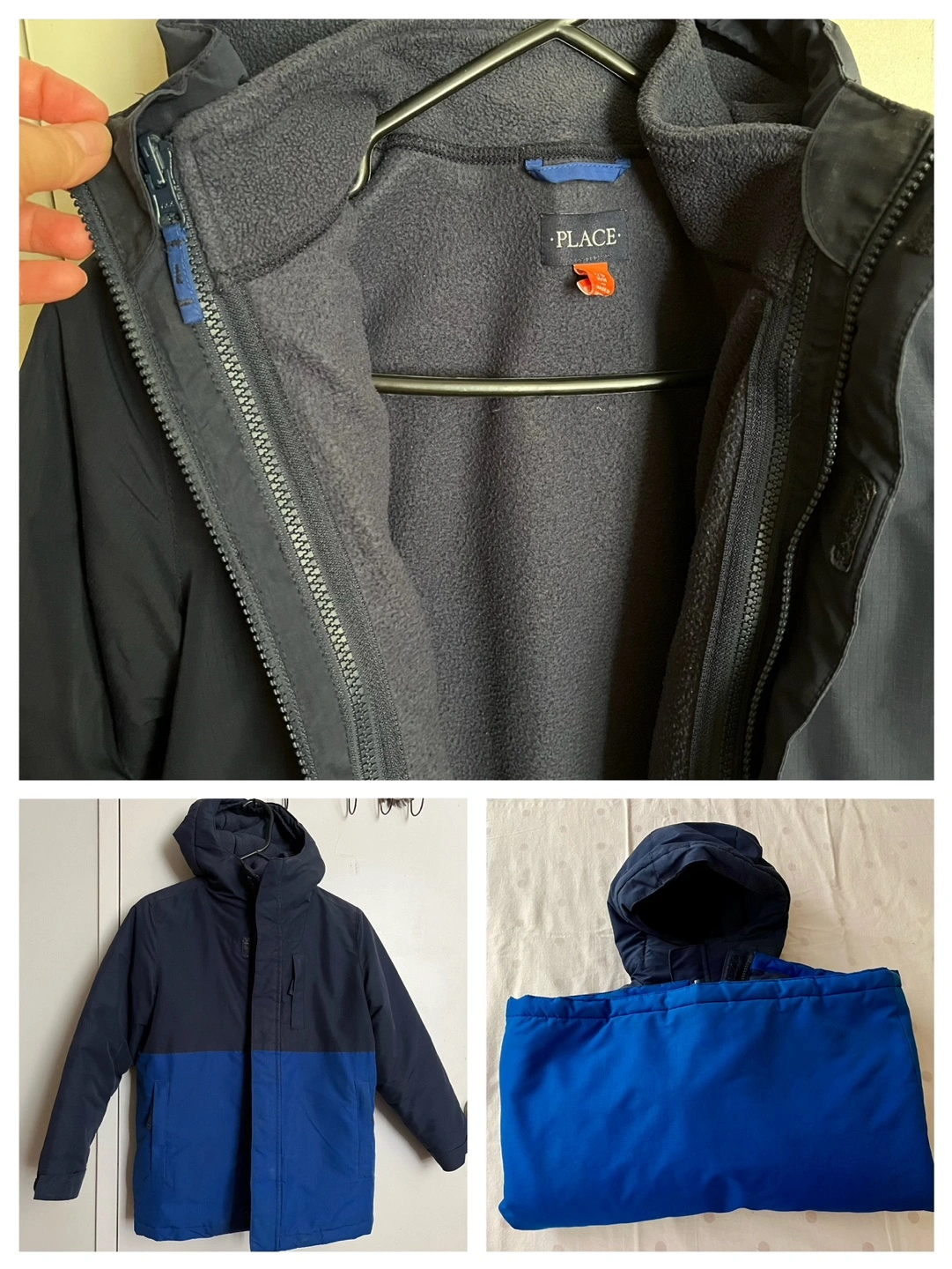 Very warm Blue and navy 2 in 1 winter jacket. Zipper closure. Fleece lining.
