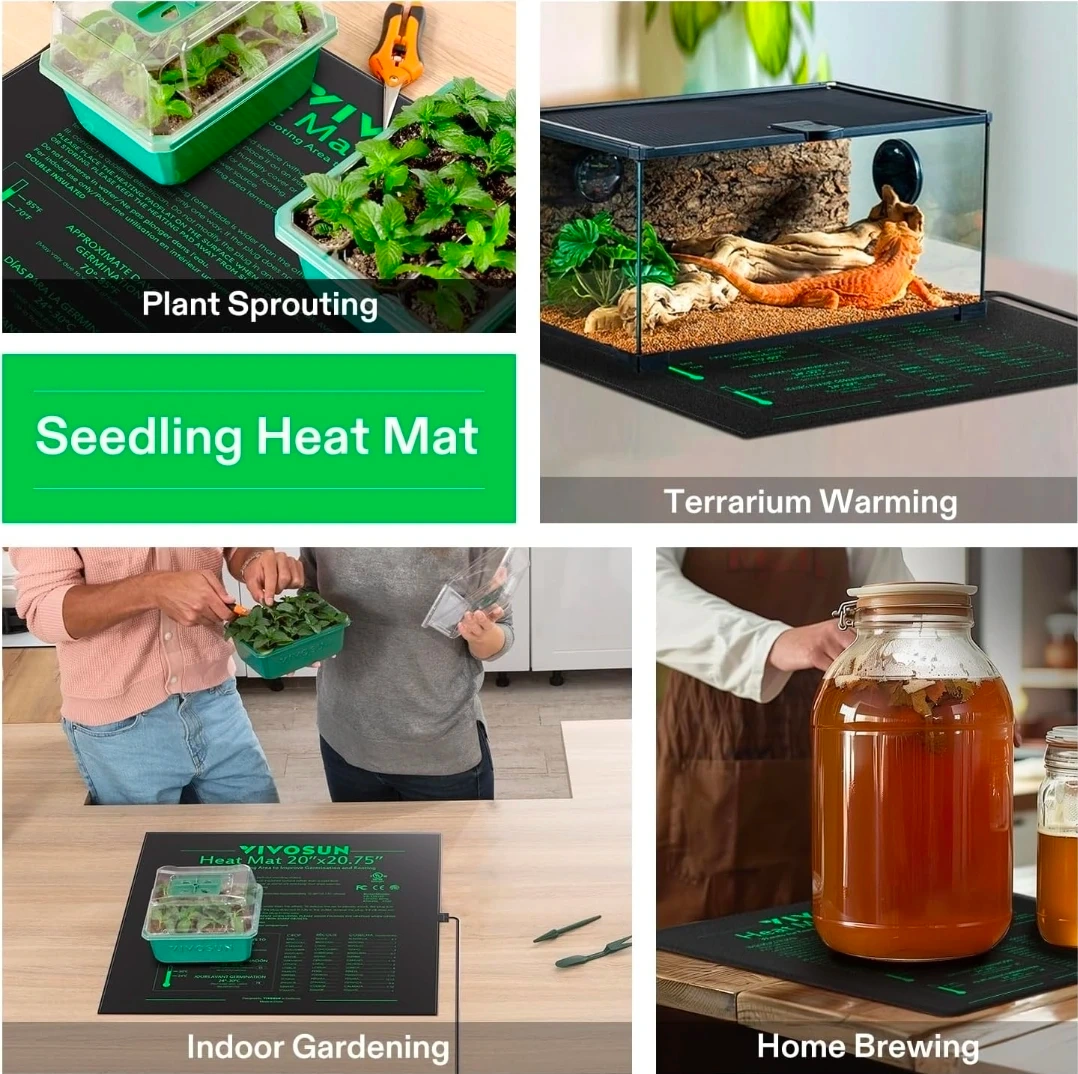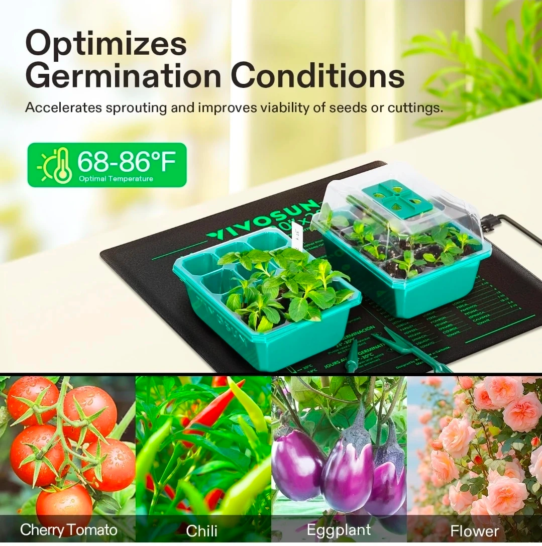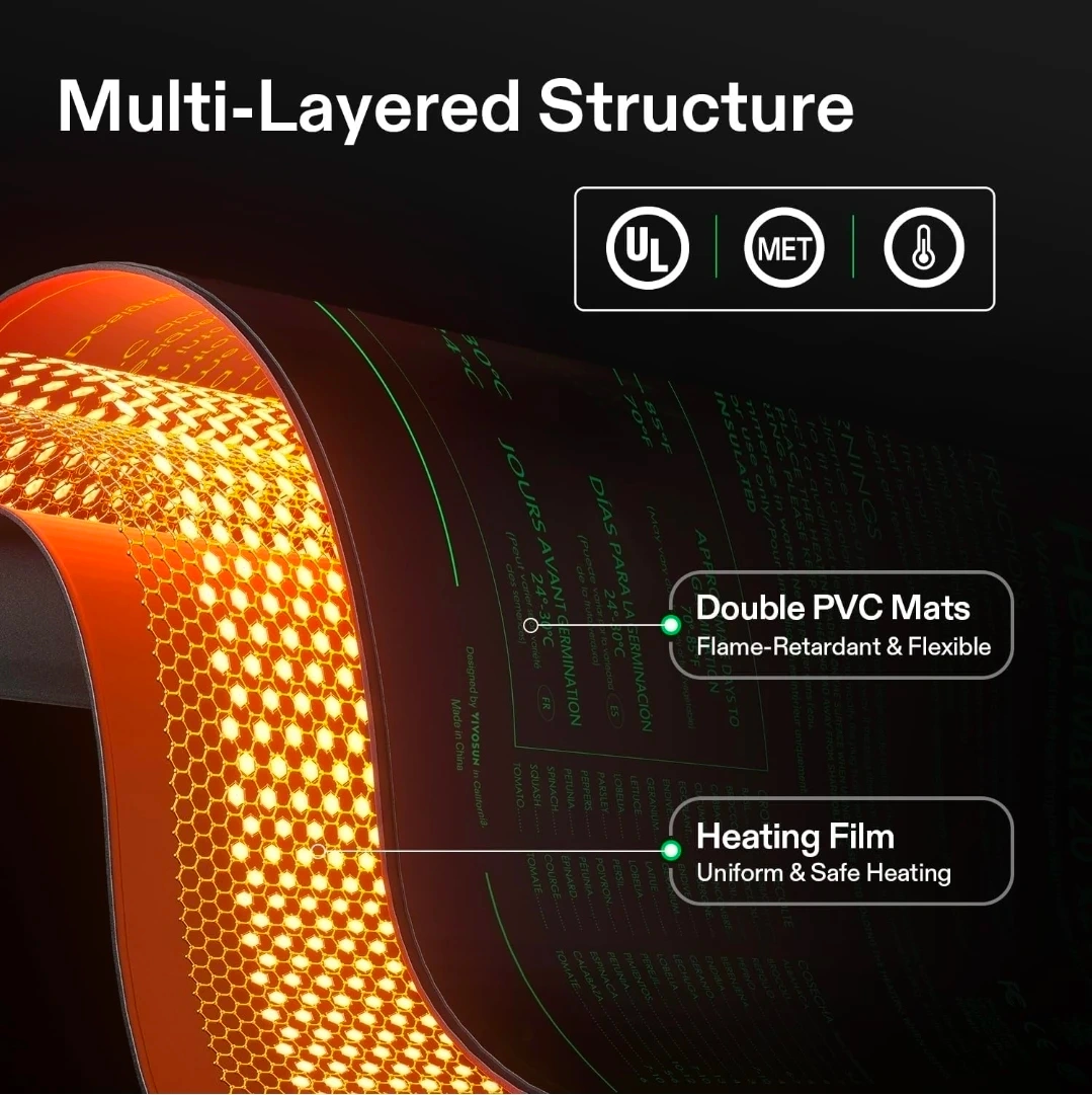 This VIVOSUN seedling heat mat uses far-infrared heating tech for efficient, uniform heat distribution. It's IP67-rated waterproof and features a multi-layered structure with double PVC mats. The mat optimizes germination conditions, accelerating sprouting and improving seed viability.