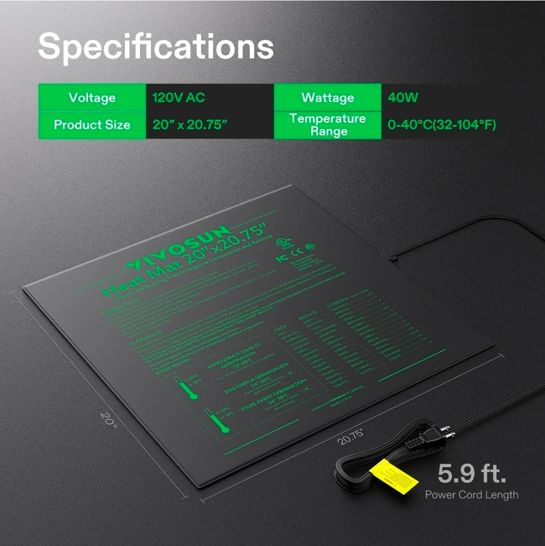 VIVOSUN Seedling Heat Mat 20" x 20.75" - UL & MET Certified