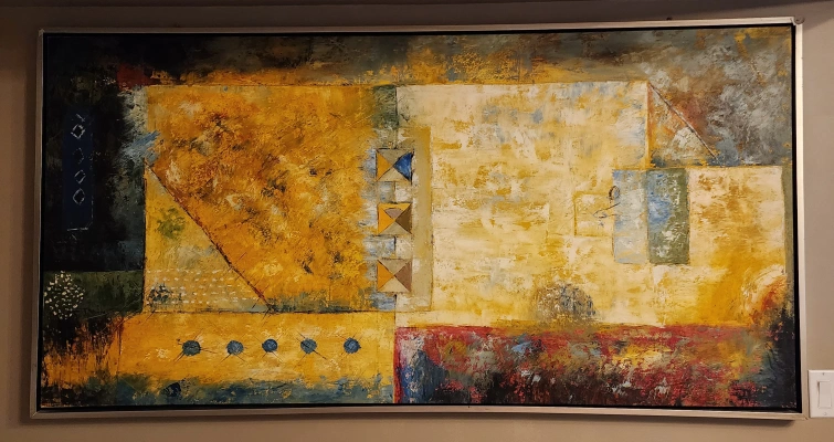Large abstract oil painting on canvas. Can be hanged both ways.