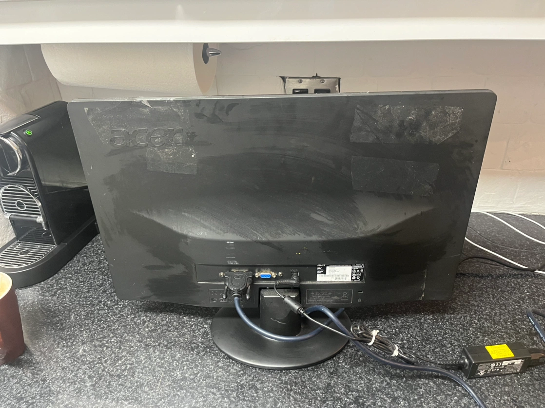 Had a VGA input and DVI input and comes with a vga cable and DVI to HDMI input so you can use it with anything that has a hdmi input as well and has all the cables u need