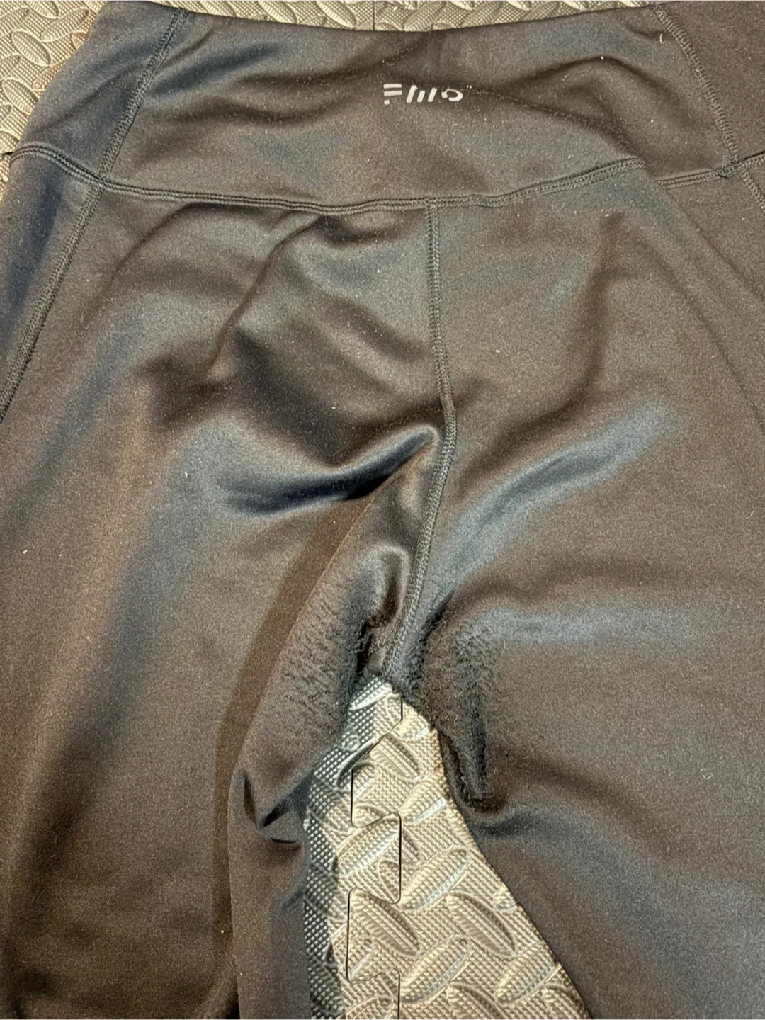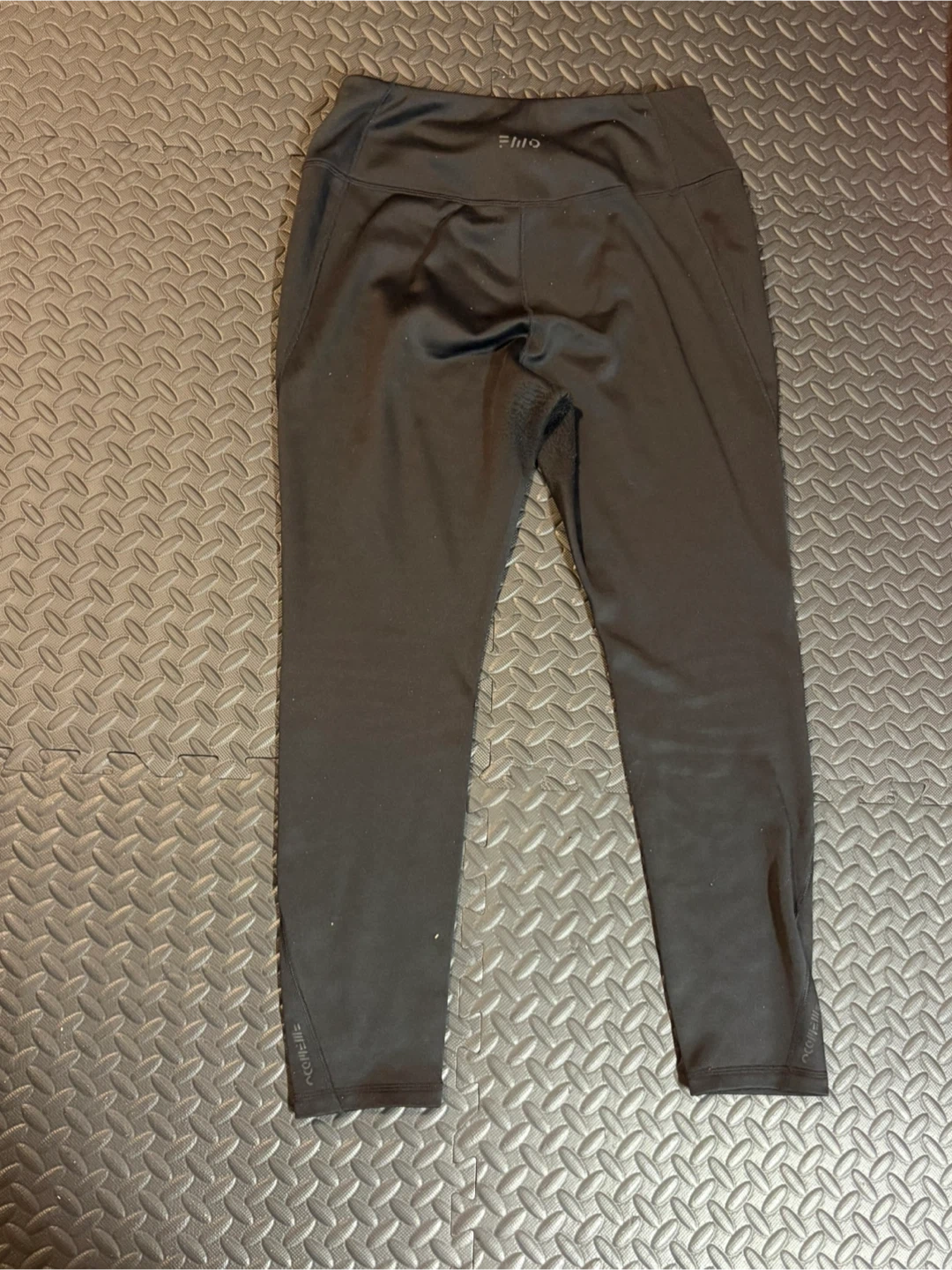 Black fleece lined active leggings, great for base layer or on their on. Some pilling is visible on the inner thigh area.