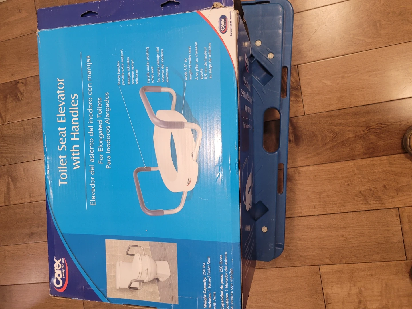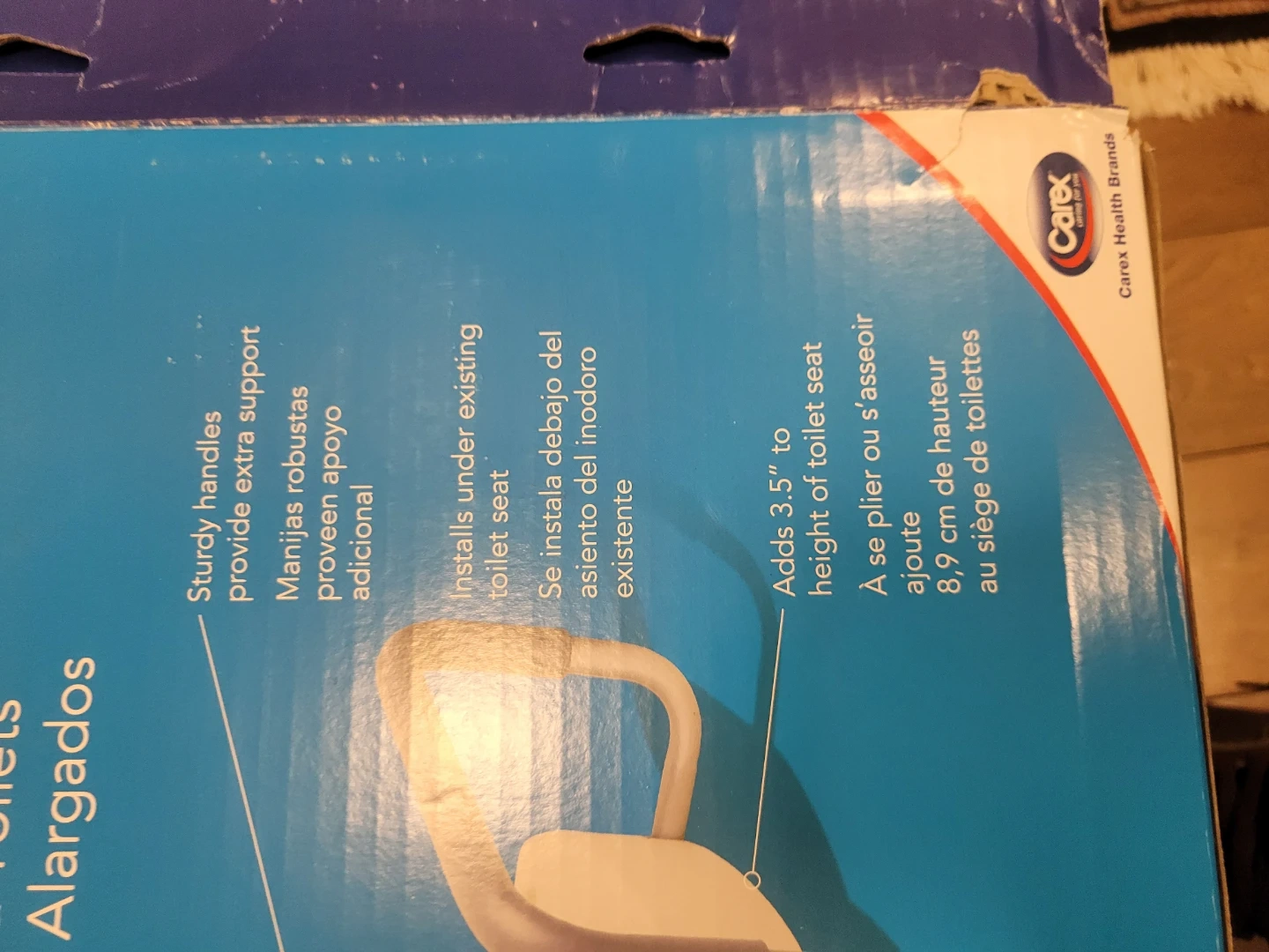 This toilet seat elevator from Carex is designed for elongated toilets. It adds 3.5" to the height and includes sturdy handles for extra support. The weight capacity is 250 lbs. It installs under the existing toilet seat.