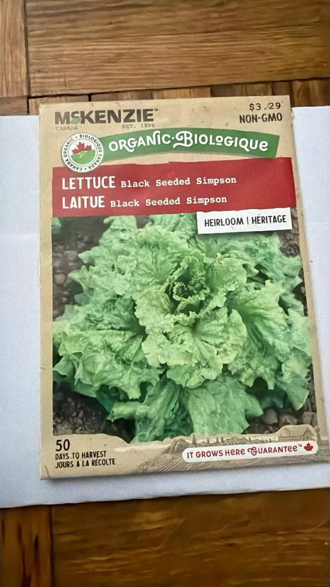 Get ready to grow some delicious lettuce with these McKenzie organic seeds for $0.75 each! This is the Black Seeded Simpson variety, perfect for a home garden. The package guarantees it grows here in Canada! Non-GMO, too Original Price $3.29 each