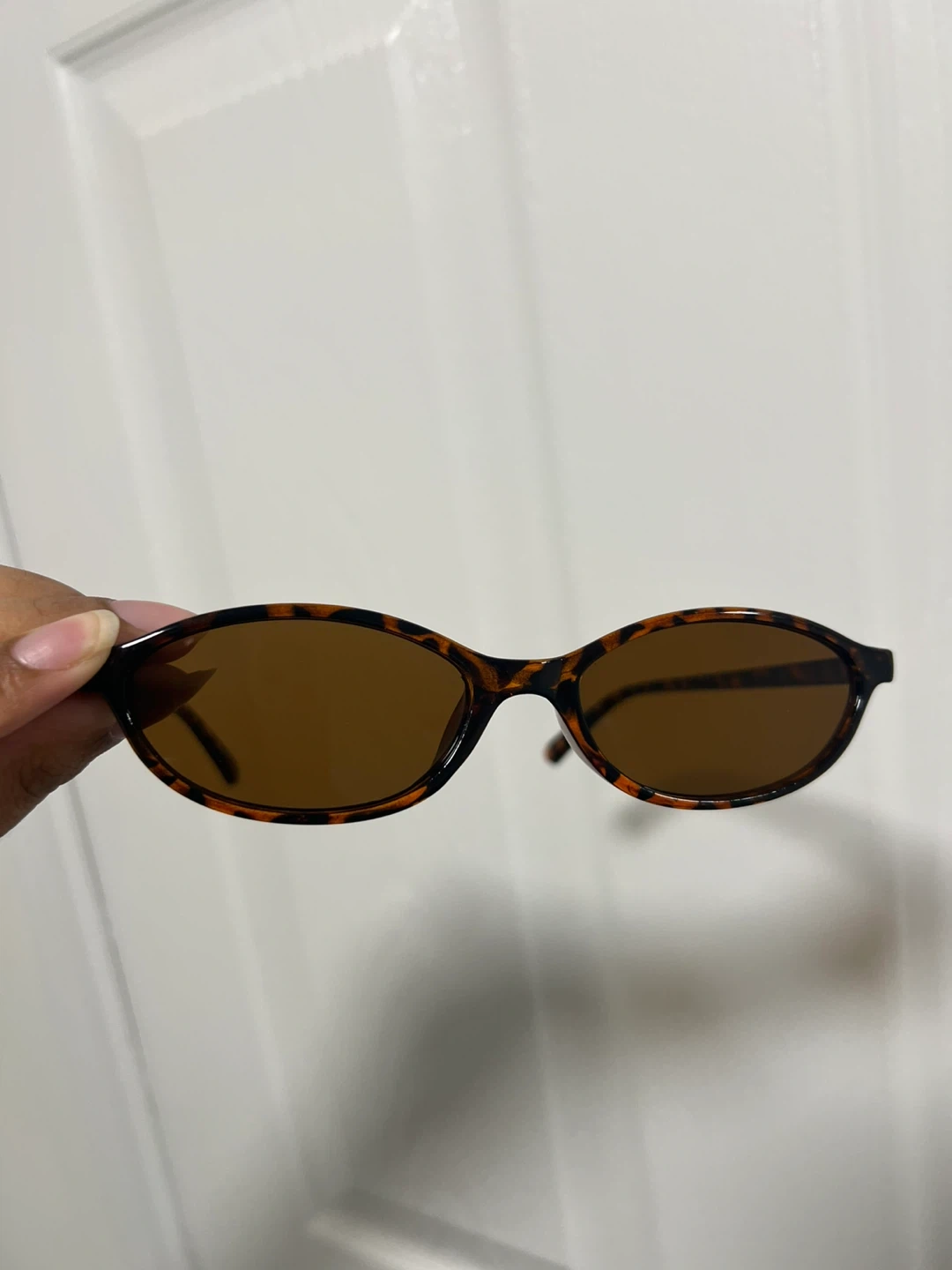 These beautiful oval sunglasses feature a classic leopard pattern. They're a stylish accessory for sunny days. Made with durable plastic frames.