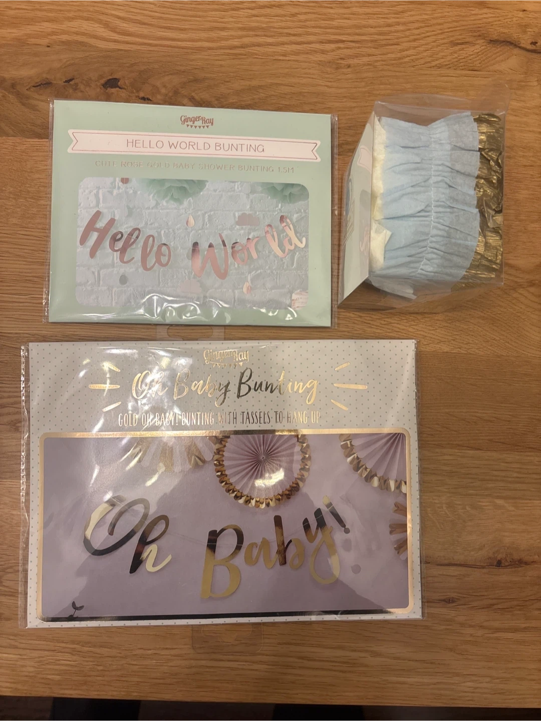 - gold “Oh Baby” bunting