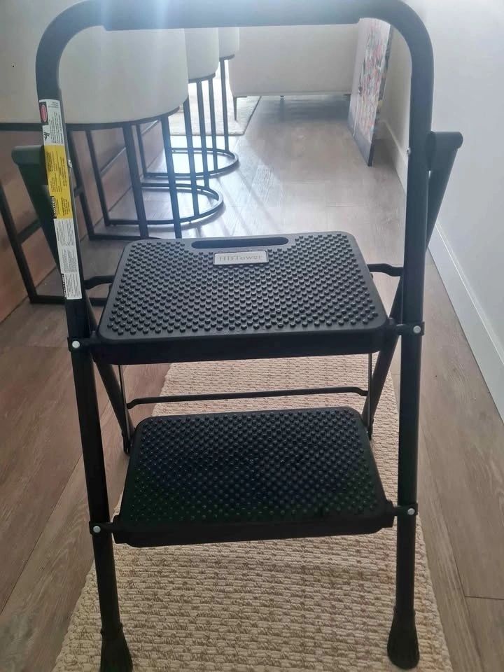 HBTower 3 Step Ladder, Folding Step Stool with Wide Anti-Slip Pedal, 500lbs Sturdy Steel Ladder, Convenient Handgrip, Lightweight, Portable Steel Step Stool, Black. Bought this stool but its just sitting here so i need it gone!! Pickup downtown Calgary.