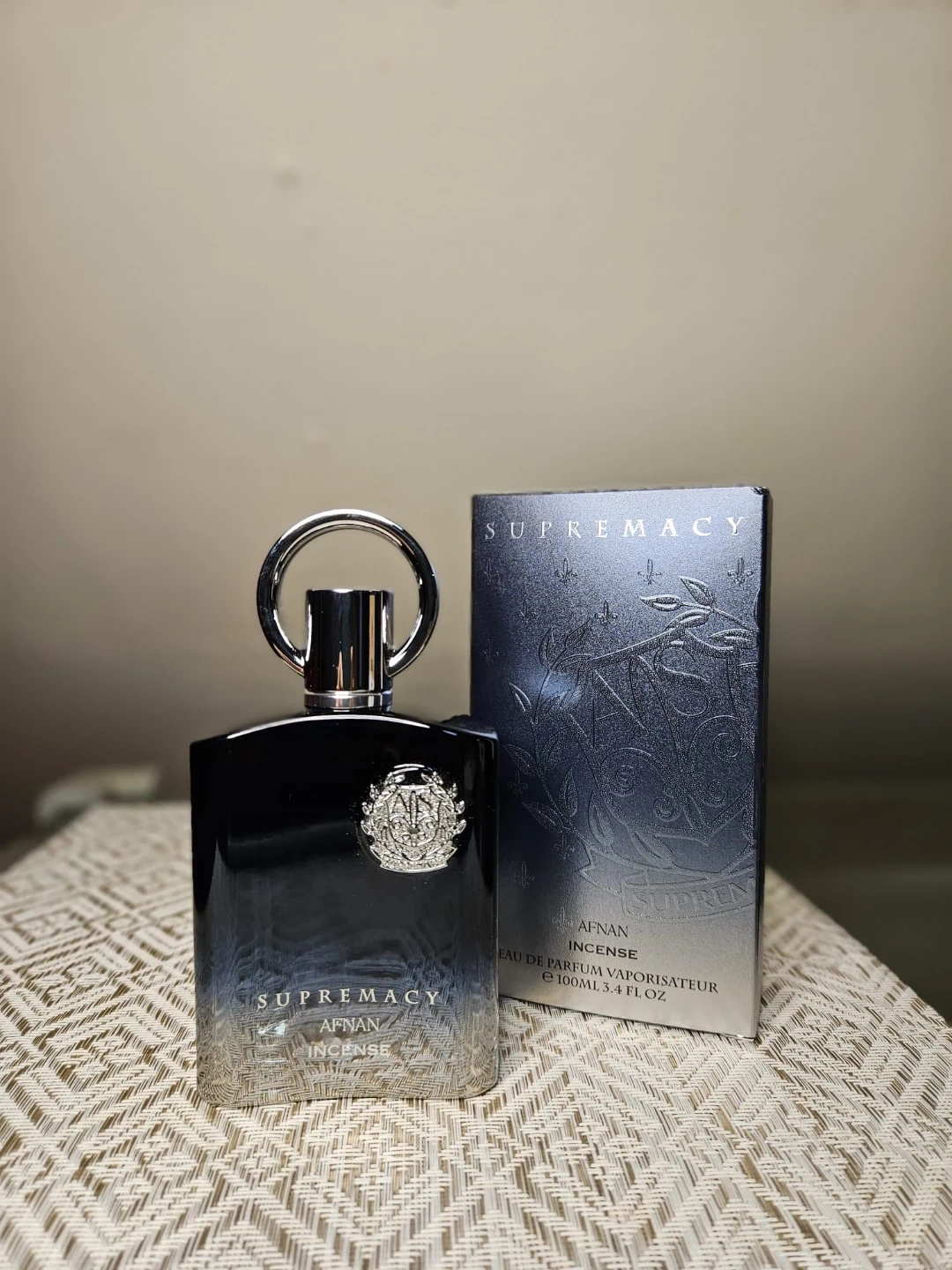 Afnan Supremacy Incense Eau de Parfum vaporizer for men. This fragrance comes in a 100ml bottle, offering 3.4 fl oz. It's a sophisticated scent for any occasion.