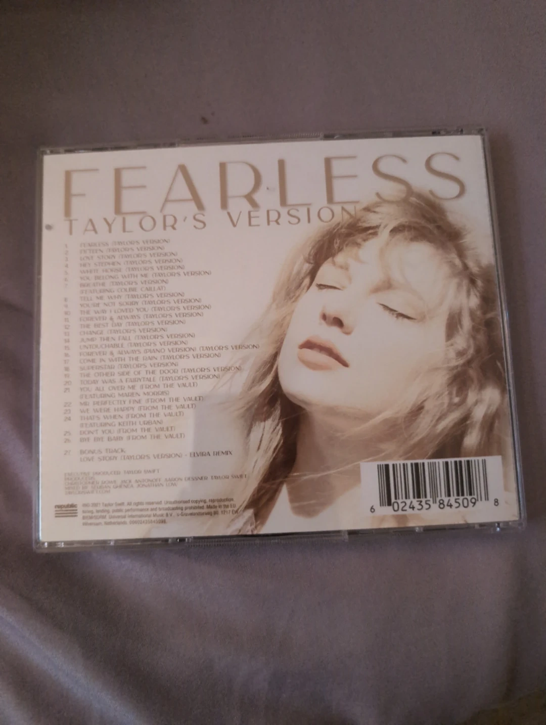 Buy & SellTaylor Swift Fearless (Taylor's Version) CDTaylor Swift Fearless (Taylor's Version) CD$17Double CD of Fearless (Taylor's Version), lyric book included. Unused perfect conditionConditionNewWHERE TO MEET6232 1A Ave SWView MapSELLERKarissaCharlesworth150 reviews1 chats·0 favorites·8 viewsSEND CHAT TO SELLERHi Karissa! I’m interested in your listing.Hi Karissa! I’m interested in your listing.Get the Karrot app to chatSign In to chat
