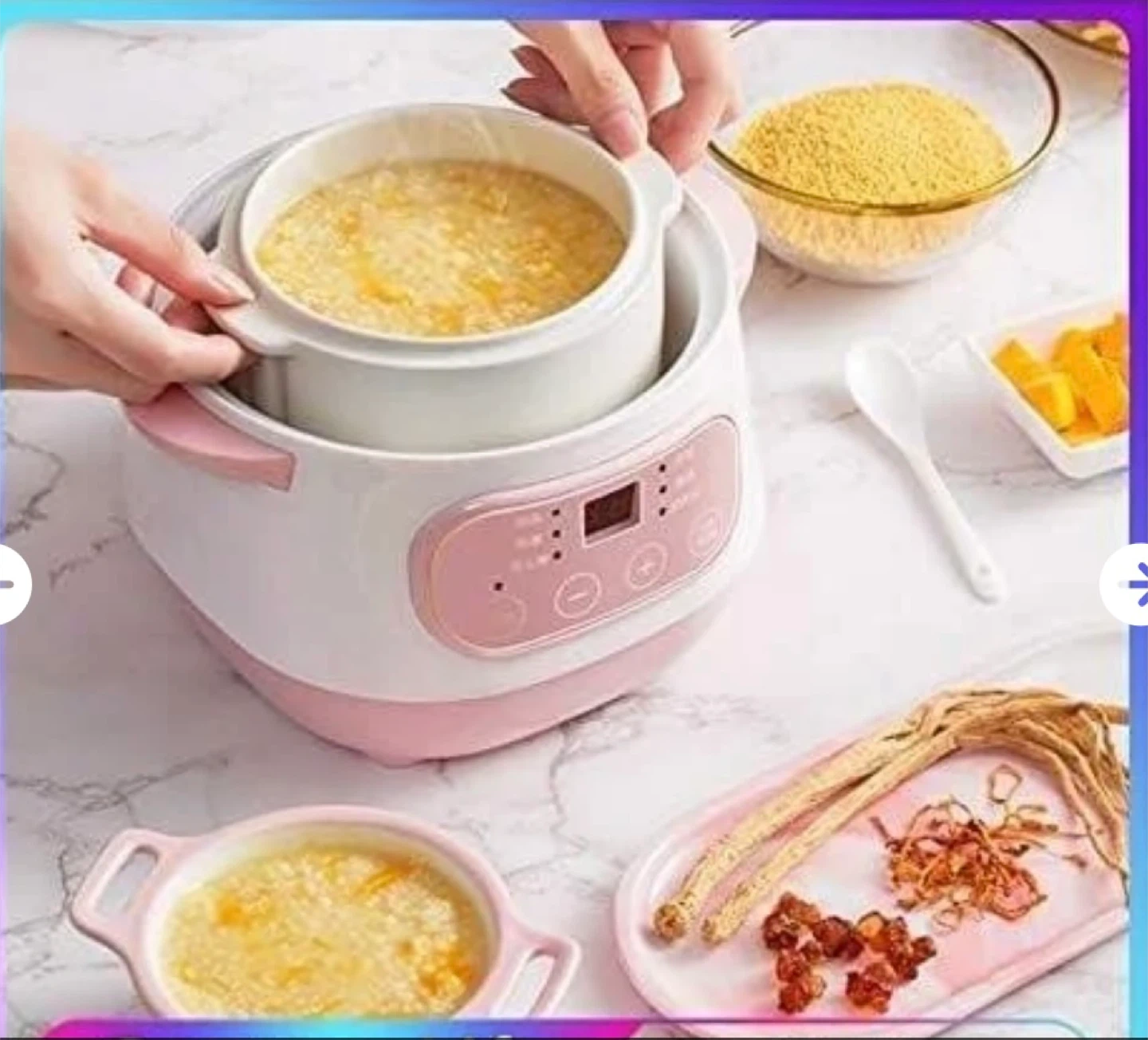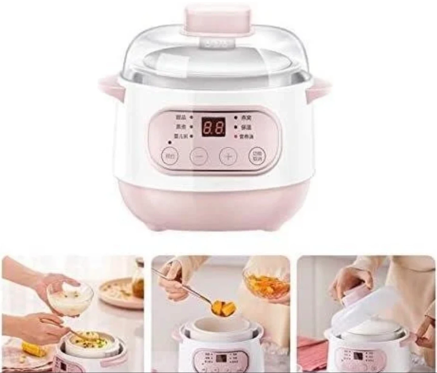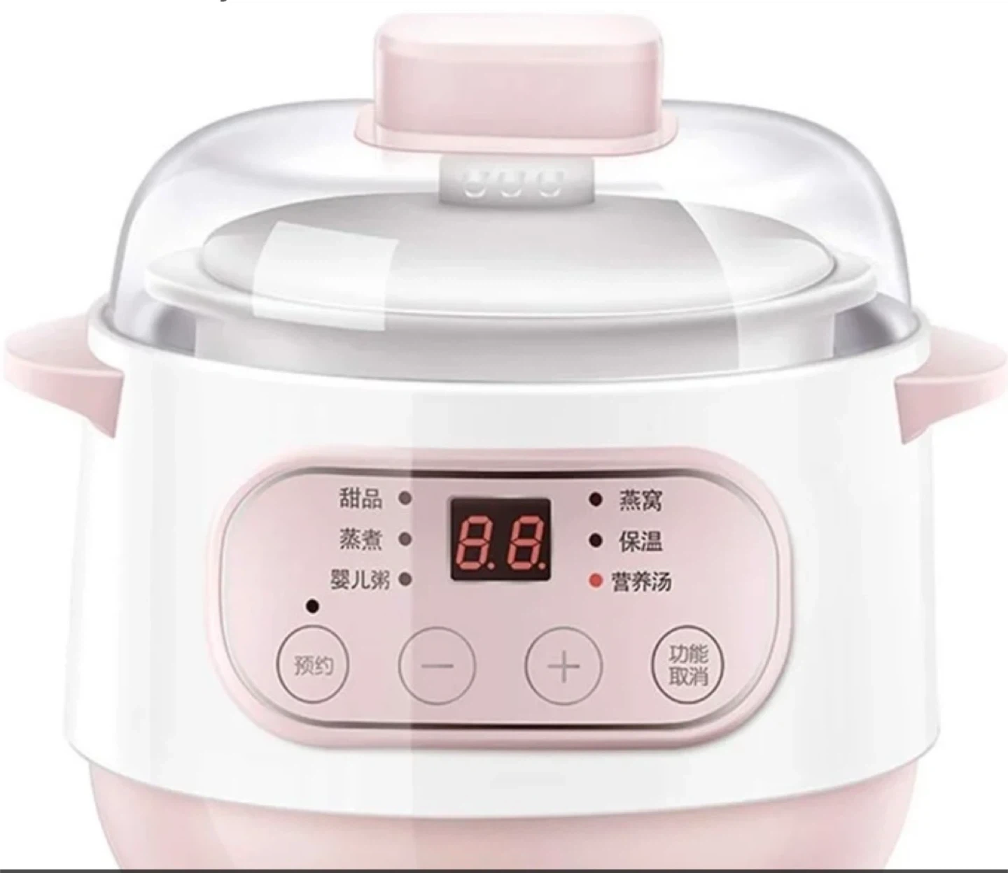 This mini electric stew pot is perfect for making desserts, steaming, porridge, bird's nest, keeping warm, and soup. It features a digital display and delay start option. It's great for preparing baby food or small servings of nutritious meals.
