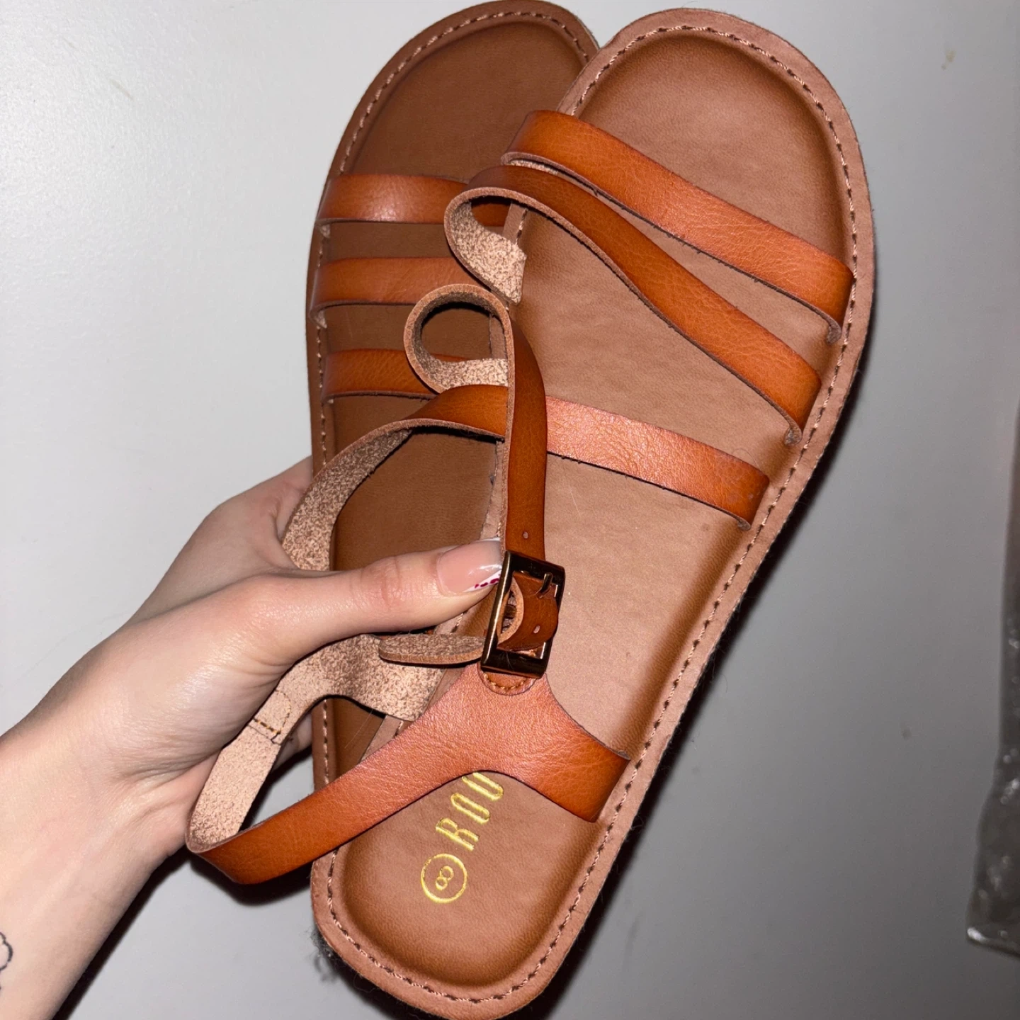 BRAND NEW !!! These Rouge women's sandals feature a strappy design with adjustable ankle straps and buckle closures. Available in classic brown and black colorways. Size 8.