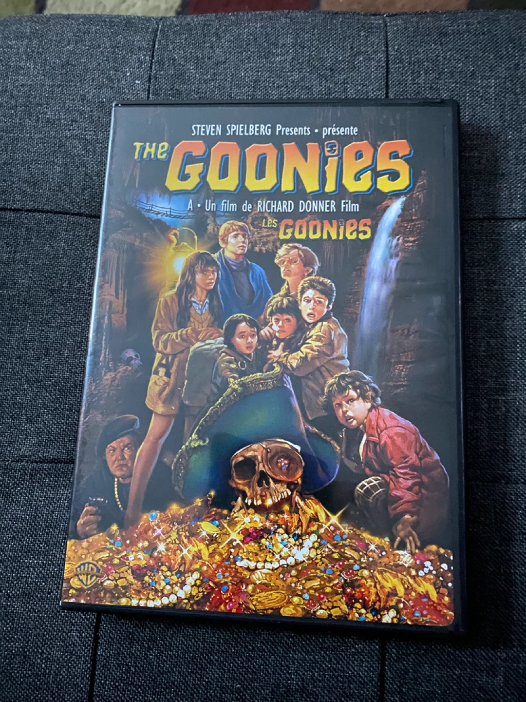 This is the classic adventure movie, The Goonies. It's directed by Richard Donner and produced by Steven Spielberg. The DVD includes the film for your viewing pleasure.