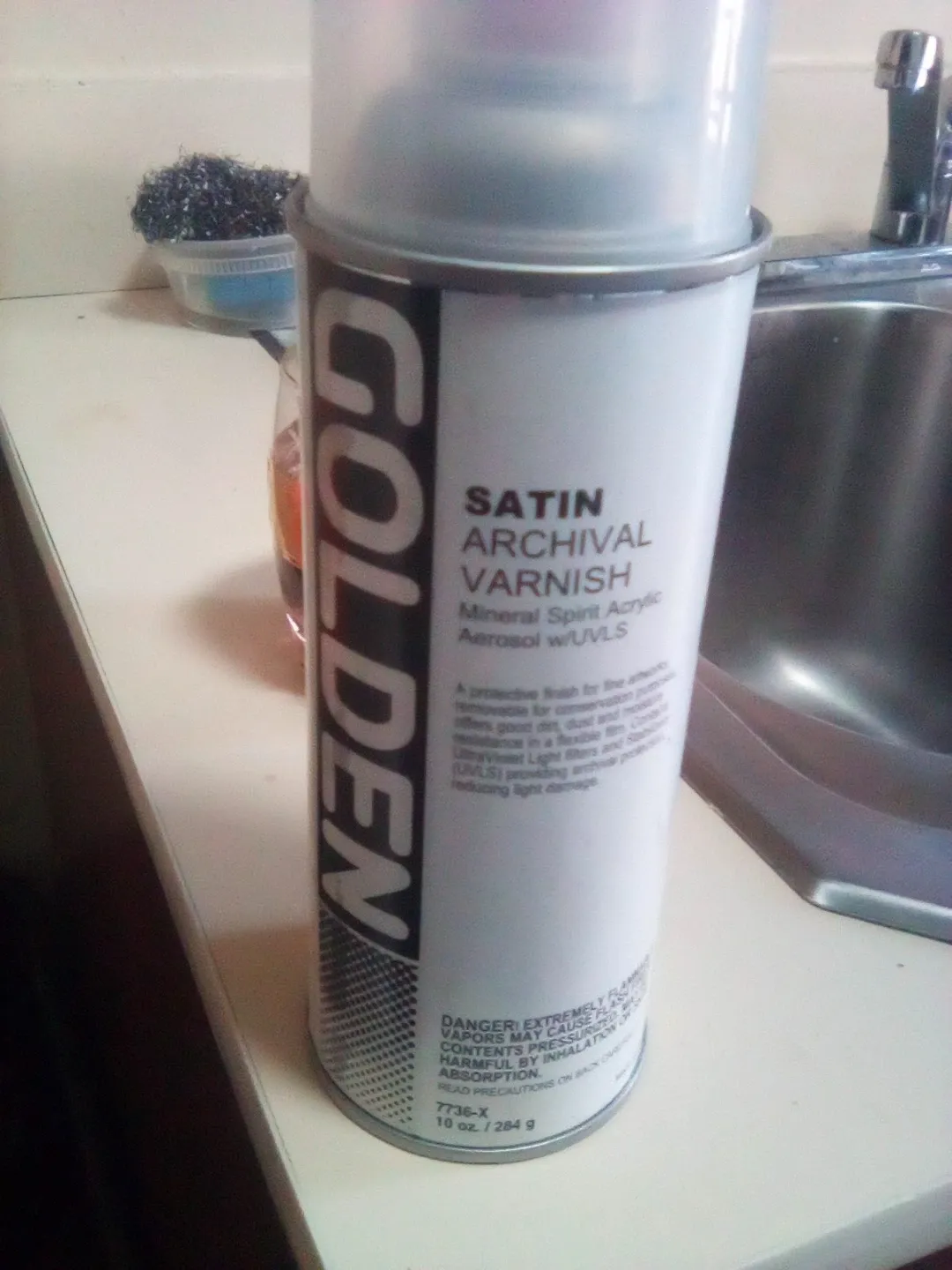 This is a 10 oz can of Golden Satin Archival Varnish. It's a protective finish for fine art. It offers good dust, dirt, and moisture resistance. It includes UV-filters and UV-stabilizers to help protect against fading from light damage.