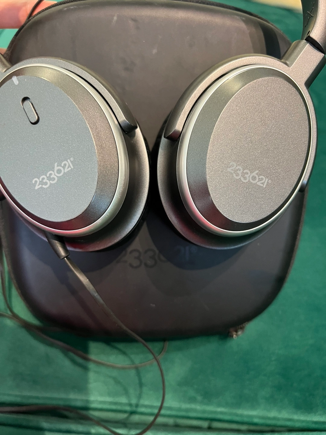 Selling a pair of 233621 headphones. They come with a carrying case, perfect for keeping them safe when you're on the go! The earcups show some wear, but they are still functional.