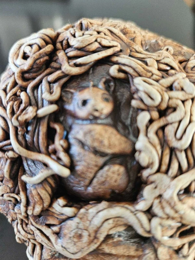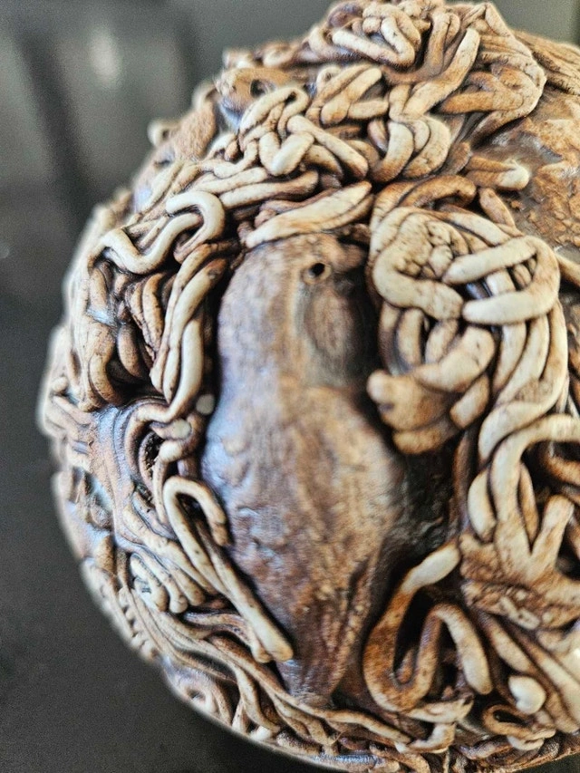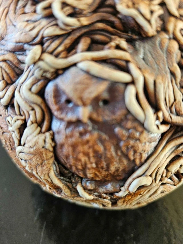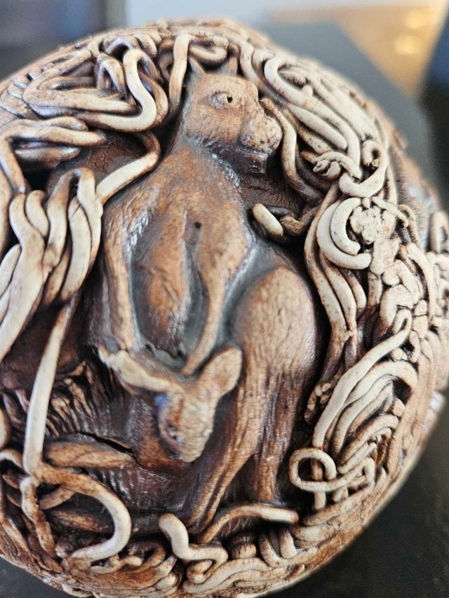 Unique and captivating, this a Art Ball showcases intricate animal designs, including koalas, owls, wombats and birds, making it a fascinating decorative piece. Its detailed craftsmanship and earthy tones add a touch of whimsy and nature-inspired charm to any space.