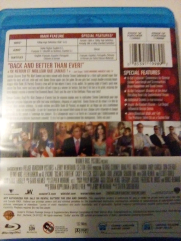 Ocean's Thirteen on Blu-ray. This movie stars George Clooney, Brad Pitt, and Matt Damon. Includes special features like deleted scenes and a gag reel. It's a thrilling heist film!
