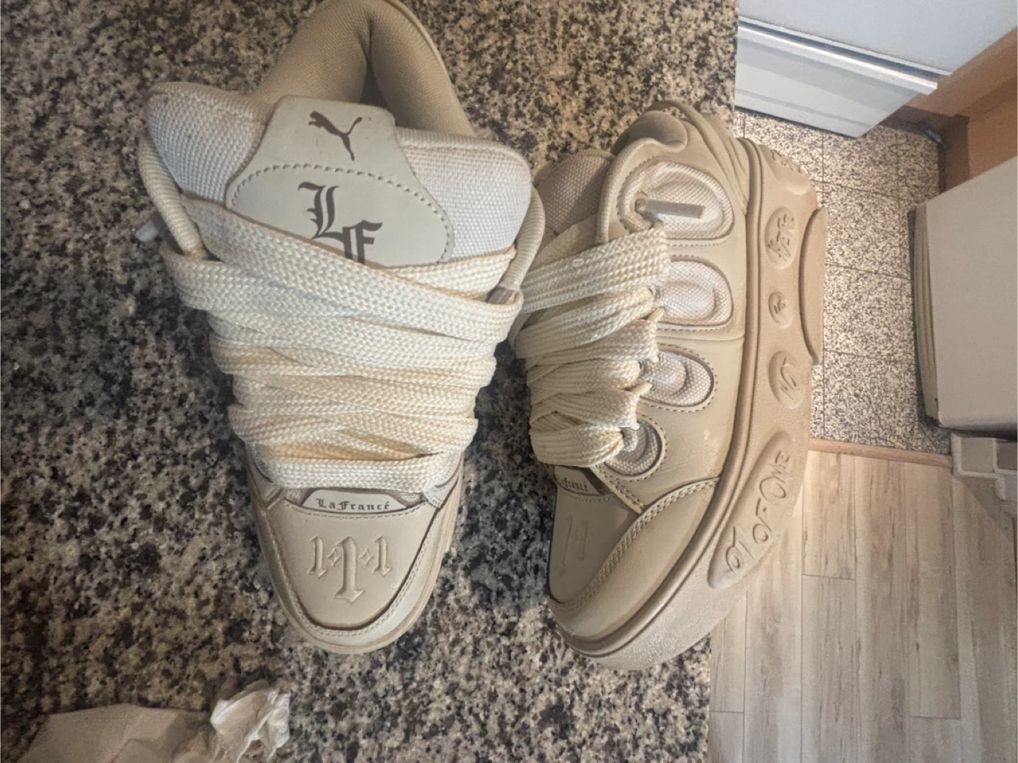These Puma La Franc 111 sneakers are a stylish and comfortable choice. They feature a unique design with bold lettering and a chunky sole. Great for casual wear or making a statement!