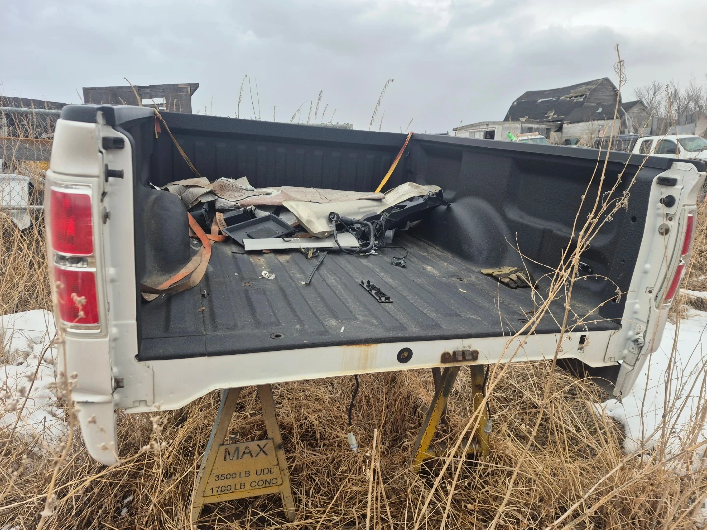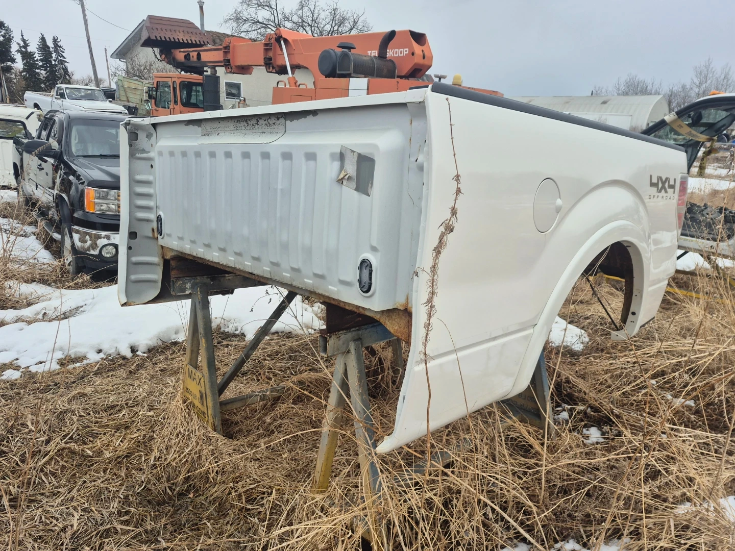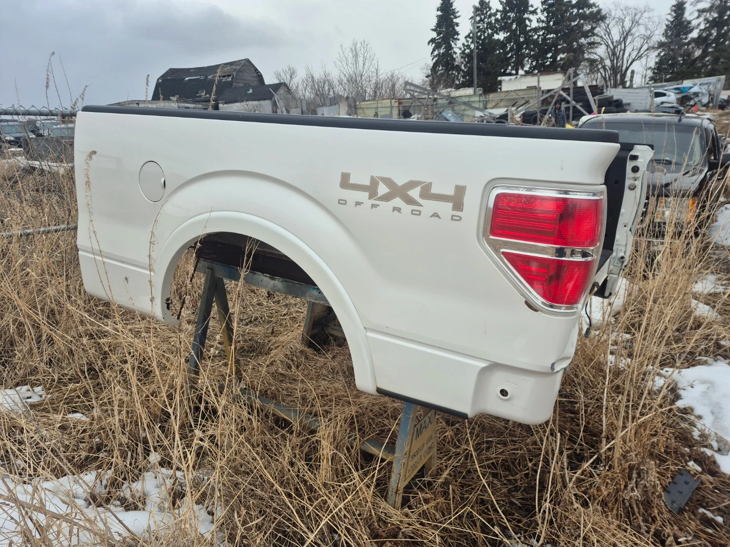This is a off white truck bed with a 4x4 Off-Road decal. It's designed for a pickup truck. The interior has a spray-in bed liner.