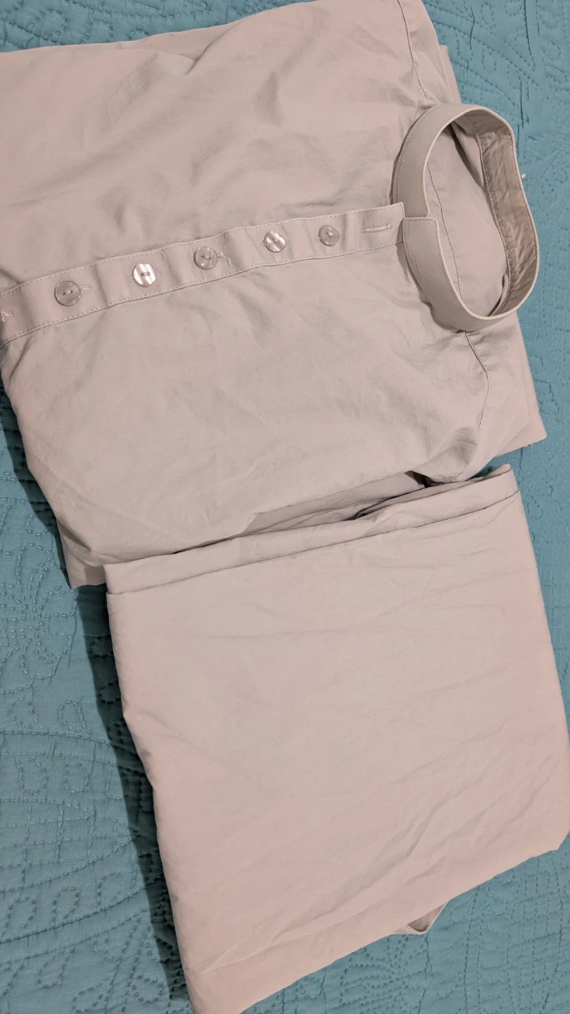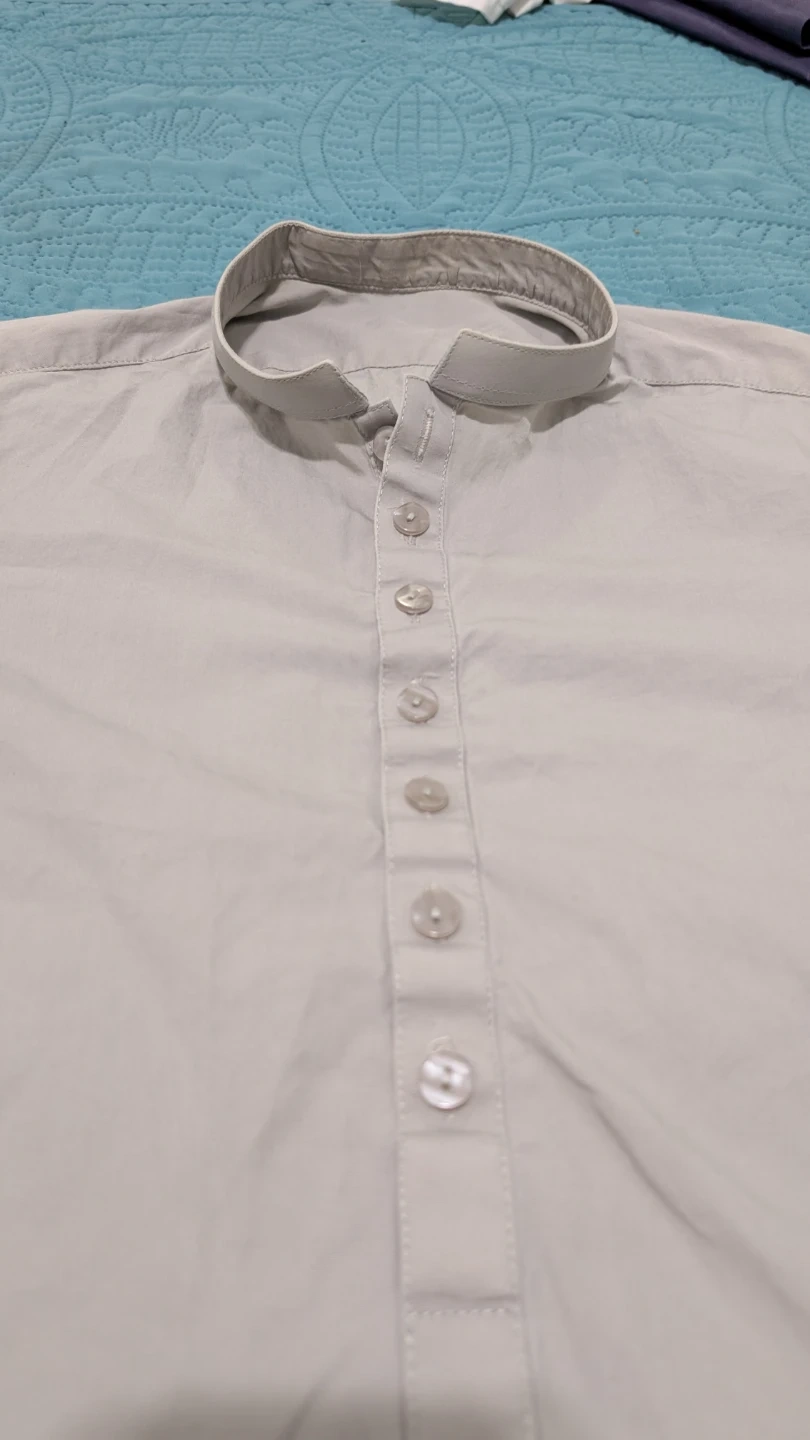 Selling a men's kurta pajama set in light grey. The sleeve length is about 8 inches, and the total length of the kurta is approximately 24 inches. It's in good condition and ready for a new home! Used 4 times. if anybody is interested.