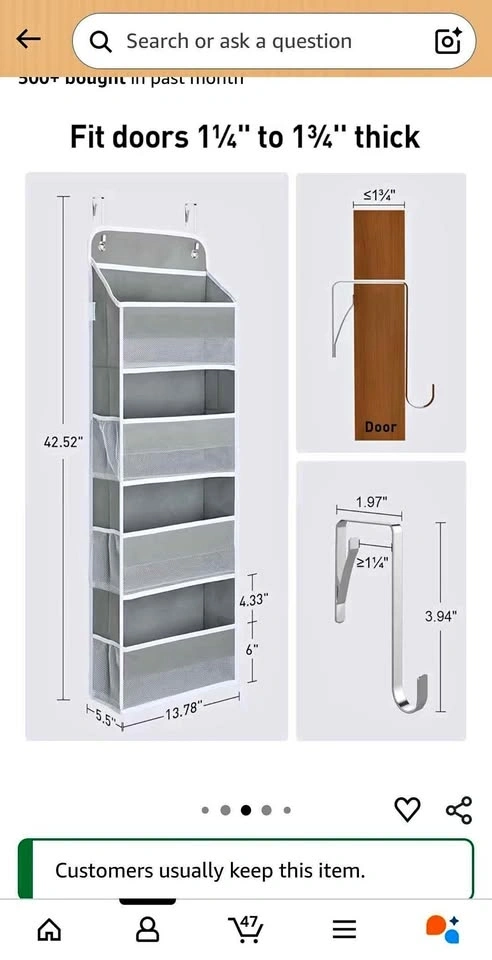Need extra storage? This 4-tier over-the-door organizer is perfect for nurseries, bathrooms, pantries, or closets. It’s heavy-duty and designed not to tilt or sag. Dimensions: 42.5" H x 13.8" W x 5.5" D. Pickup near Wilson Station.