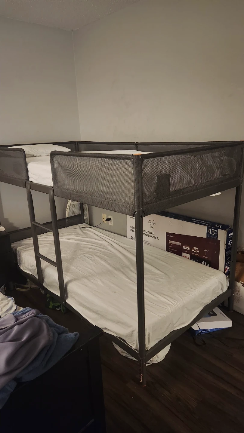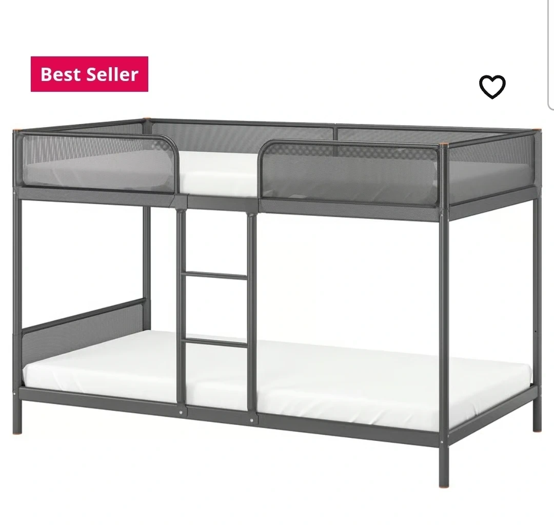 Buy & SellIKEA Tuffing bunk bed frame with mattressIKEA Tuffing bunk bed frame with mattress$87Selling an IKEA Tuffing bunk bed frame in great, excellent condition. Mattress ALSO included. ConditionLike newWHERE TO MEET4769 Hazel StreetView MapSELLERBilalMetrotown301 review0 chats·0 favorites·42 viewsSEND CHAT TO SELLERHi Bilal! I’m interested in your listing.Hi Bilal! I’m interested in your listing.Get the Karrot app to chatSign In to chat