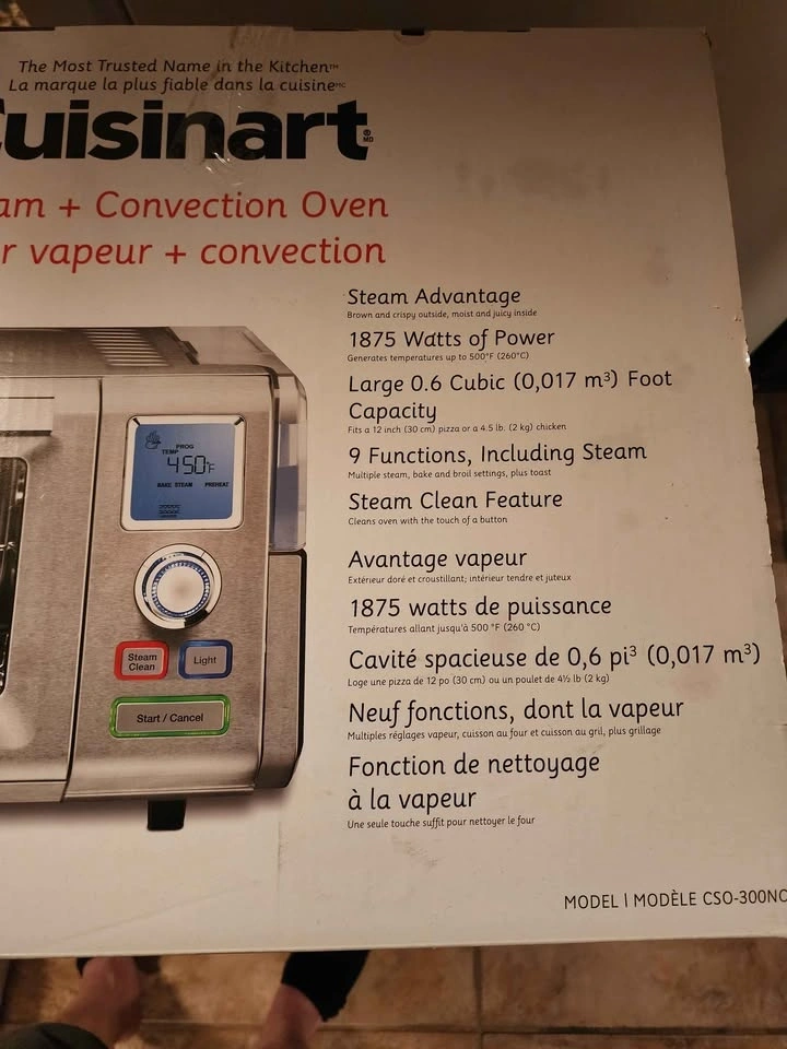Buy & SellCuisinart Steam and Convection OvenCuisinart Steam and Convection Oven$120Functionality is excellent. Used but clean. Serious buyers only and must be picked up.WHERE TO MEETCheck LocationView MapSELLERNatashaMaryvale100 reviews0 chats·0 favorites·2 viewsSEND CHAT TO SELLERHi Natasha! I’m interested in your listing.Hi Natasha! I’m interested in your listing.Get the Karrot app to chatSign In to chat