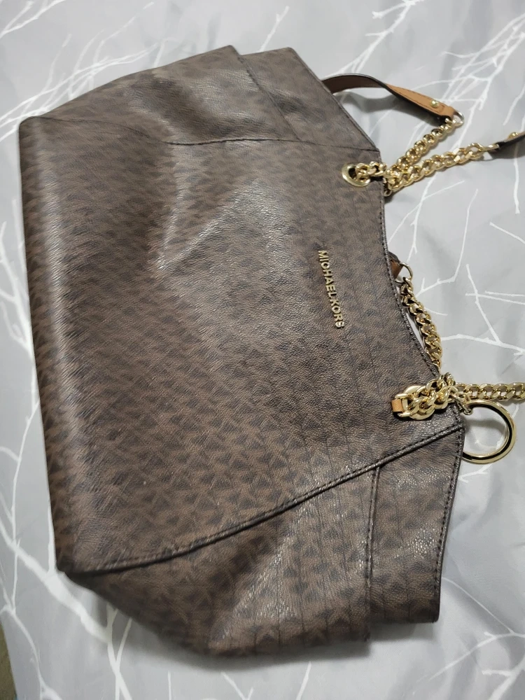 Selling a Michael Kors tote bag in brown. It features a chain detail and is in good condition. Perfect for everyday use!