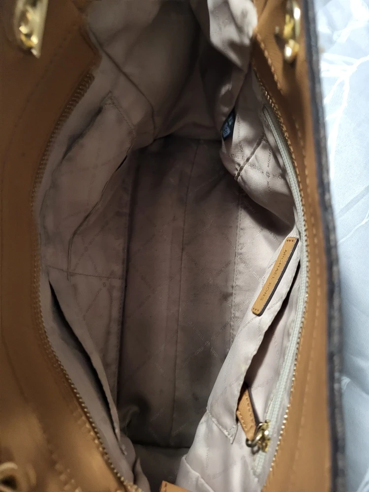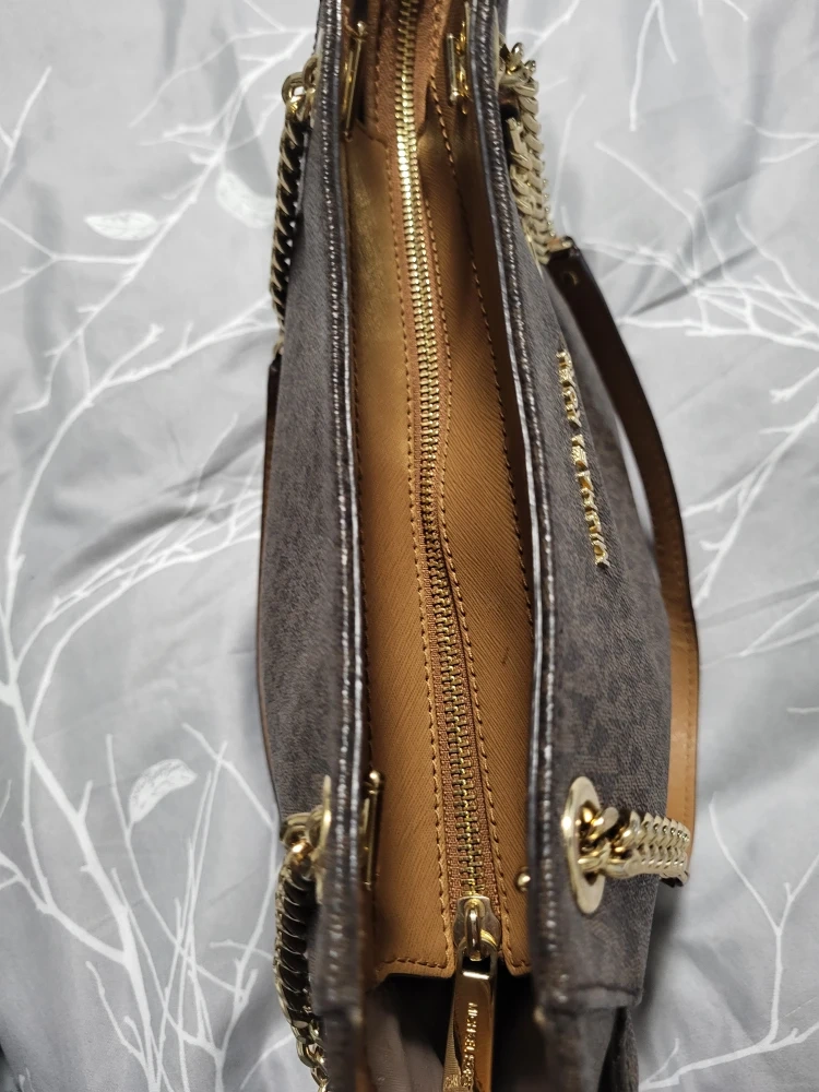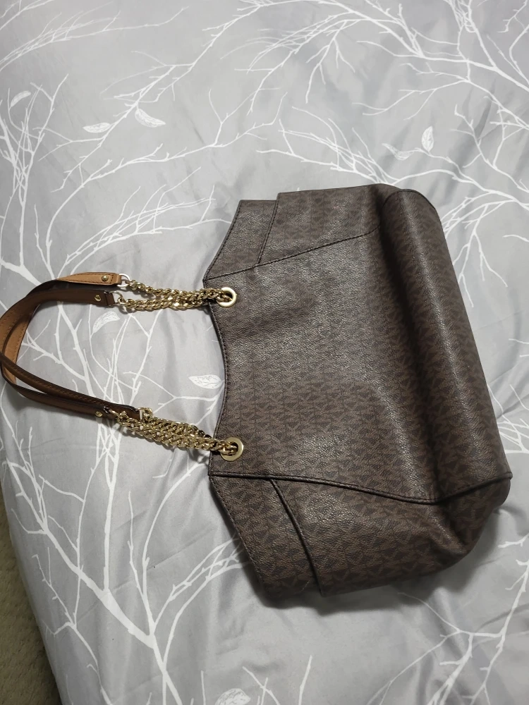 Selling a Michael Kors tote bag in brown. It features a chain detail and is in good condition. Perfect for everyday use!